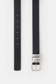 Belt made of Italian leather with polished, multicoloured edges. With metal buckle, adjustable fit and embossed logo. Made in Italy.
