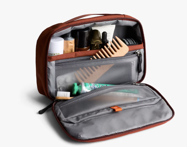 - Slim zip pocket keeps a manual toothbrush hygienically stowed