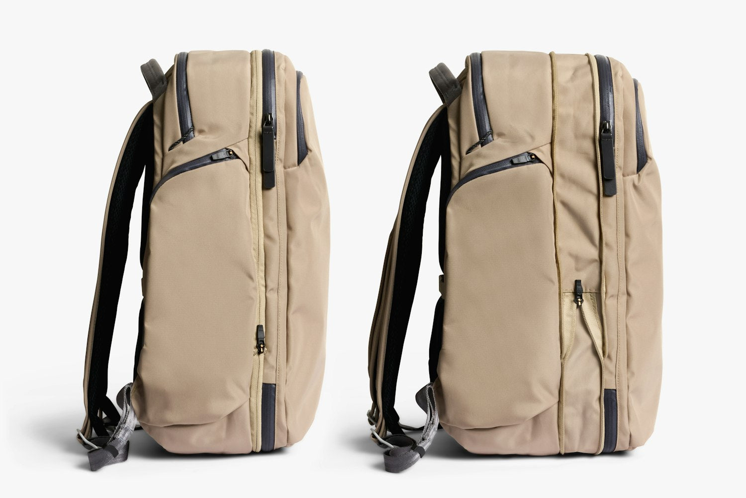 A champion daily workhorse that expands to a 38L travel companion, optimized for transit with ultimate comfort and organization.