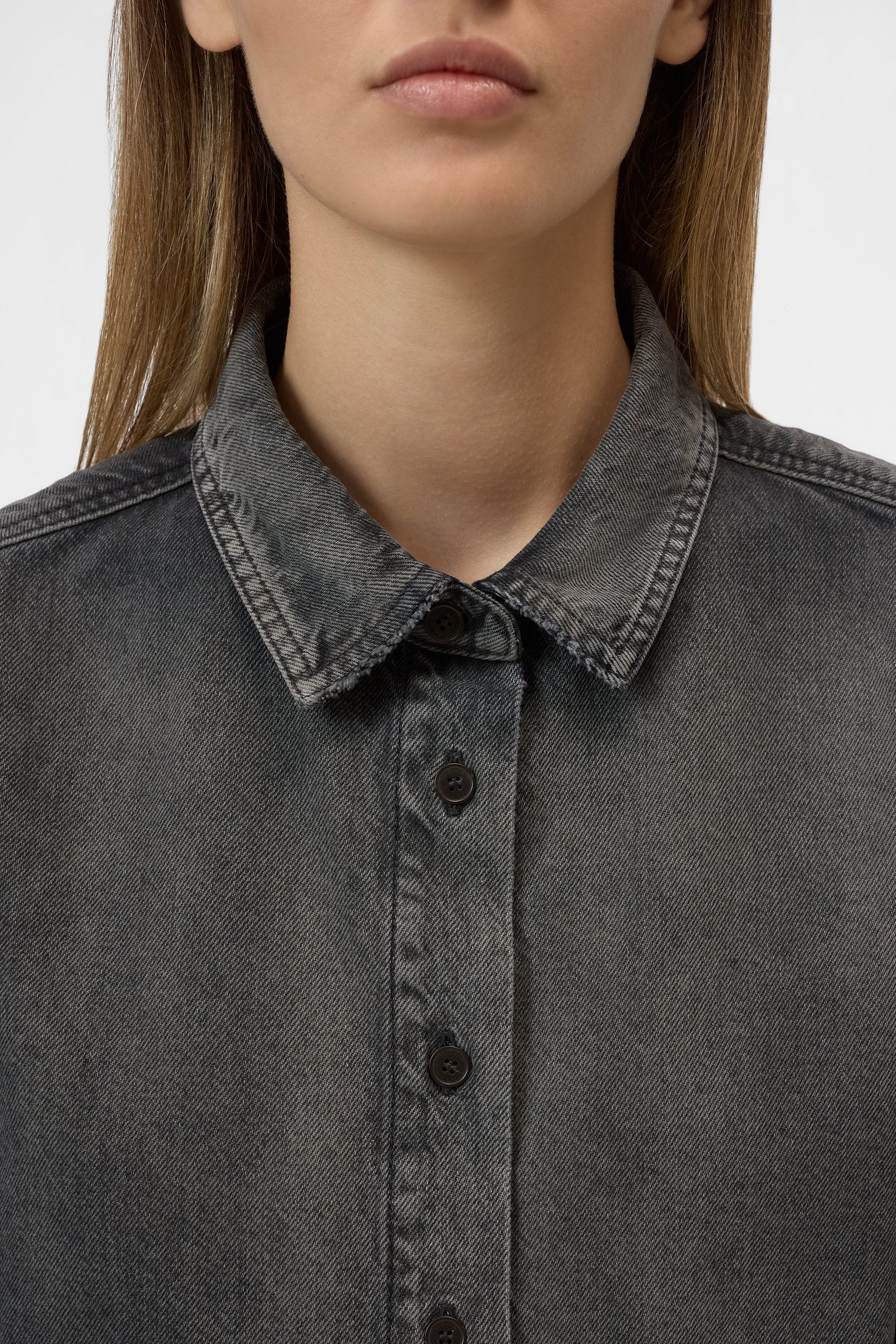 CLOSED WOMENS DENIM SHIRT WITH CURVED HEM - DARK GREY