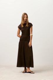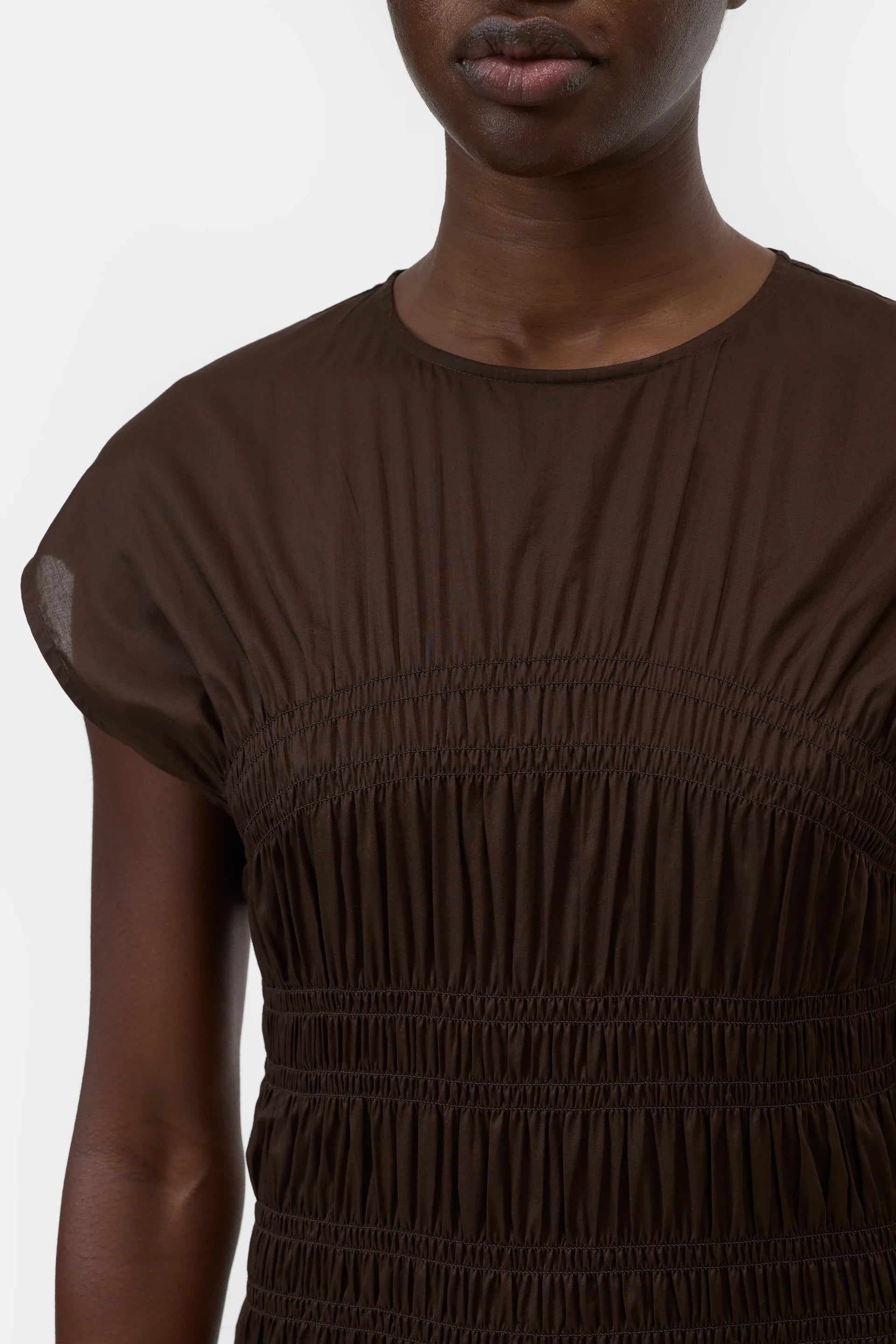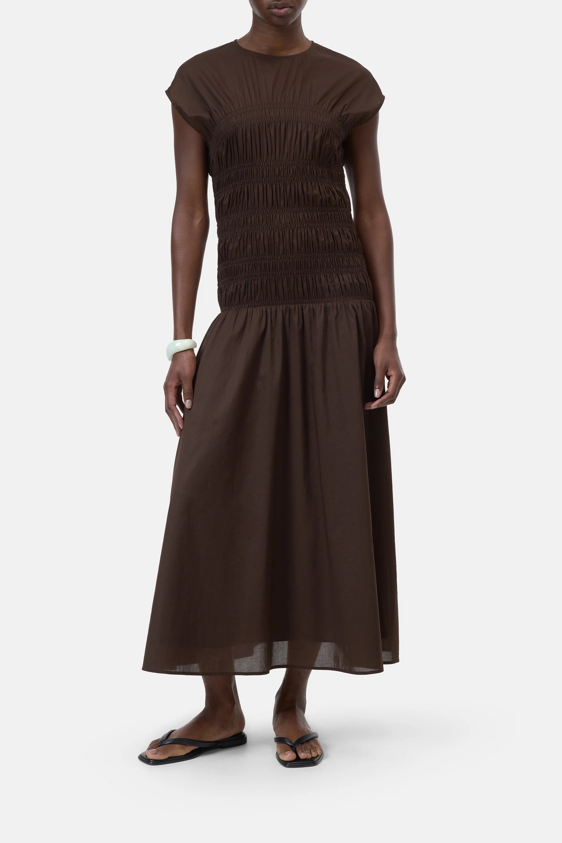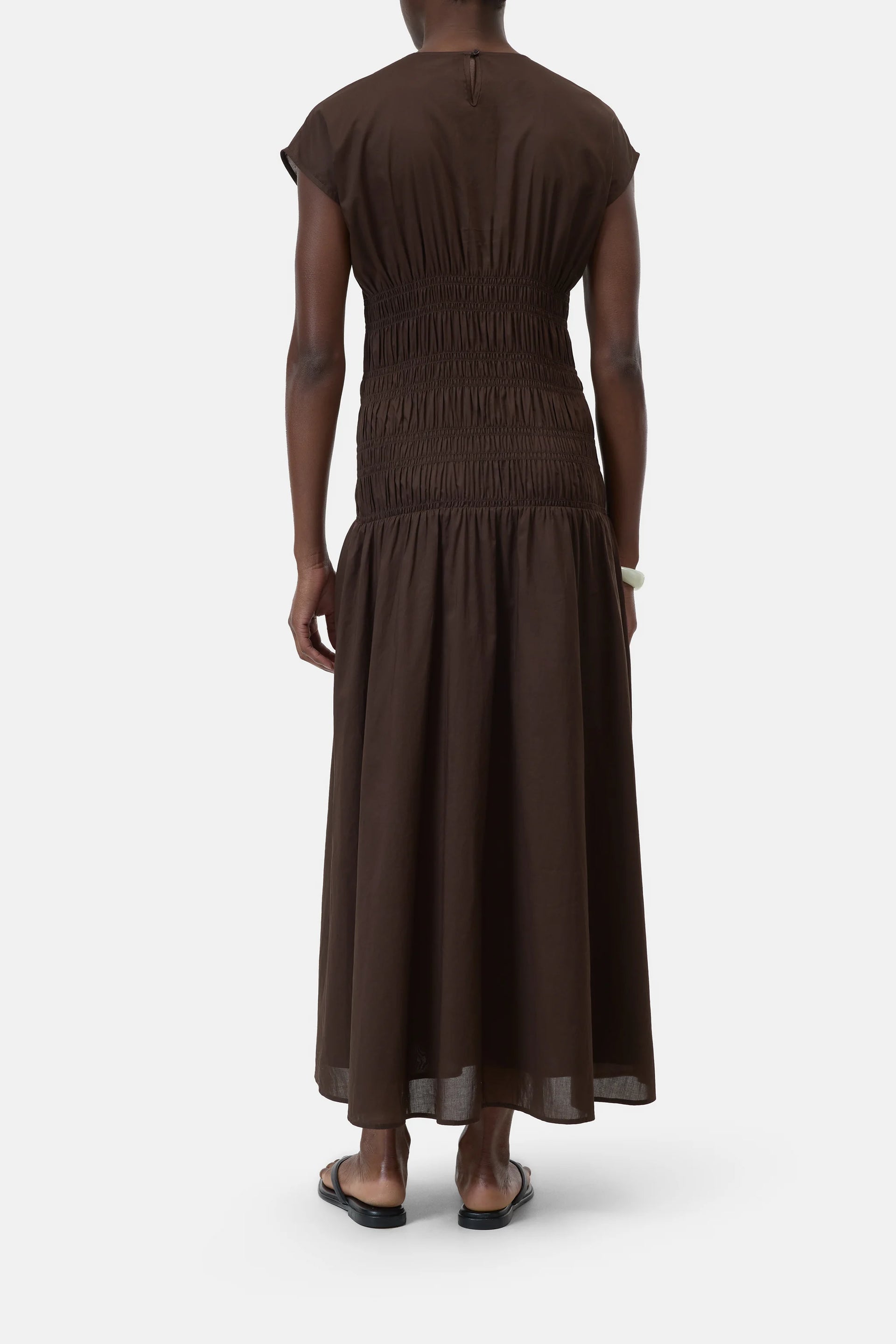 CLOSED WOMENS SMOCKED DRESS - MAPLE BROWN
