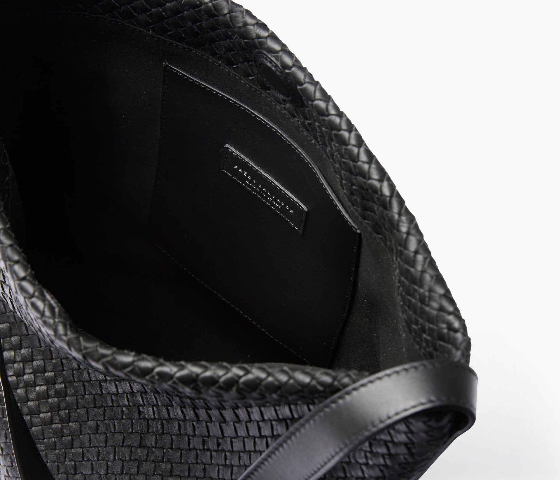 - 100% Spanish leather in black woven calf. This tannery is a Leather Working Group-approved trader. The Leather Working Group is a tool to evaluate the environmental performance of leather goods manufacturers.