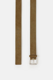 Made of high-quality suede in Italy, this classic belt comes with a silver buckle and precisely punched holes.