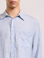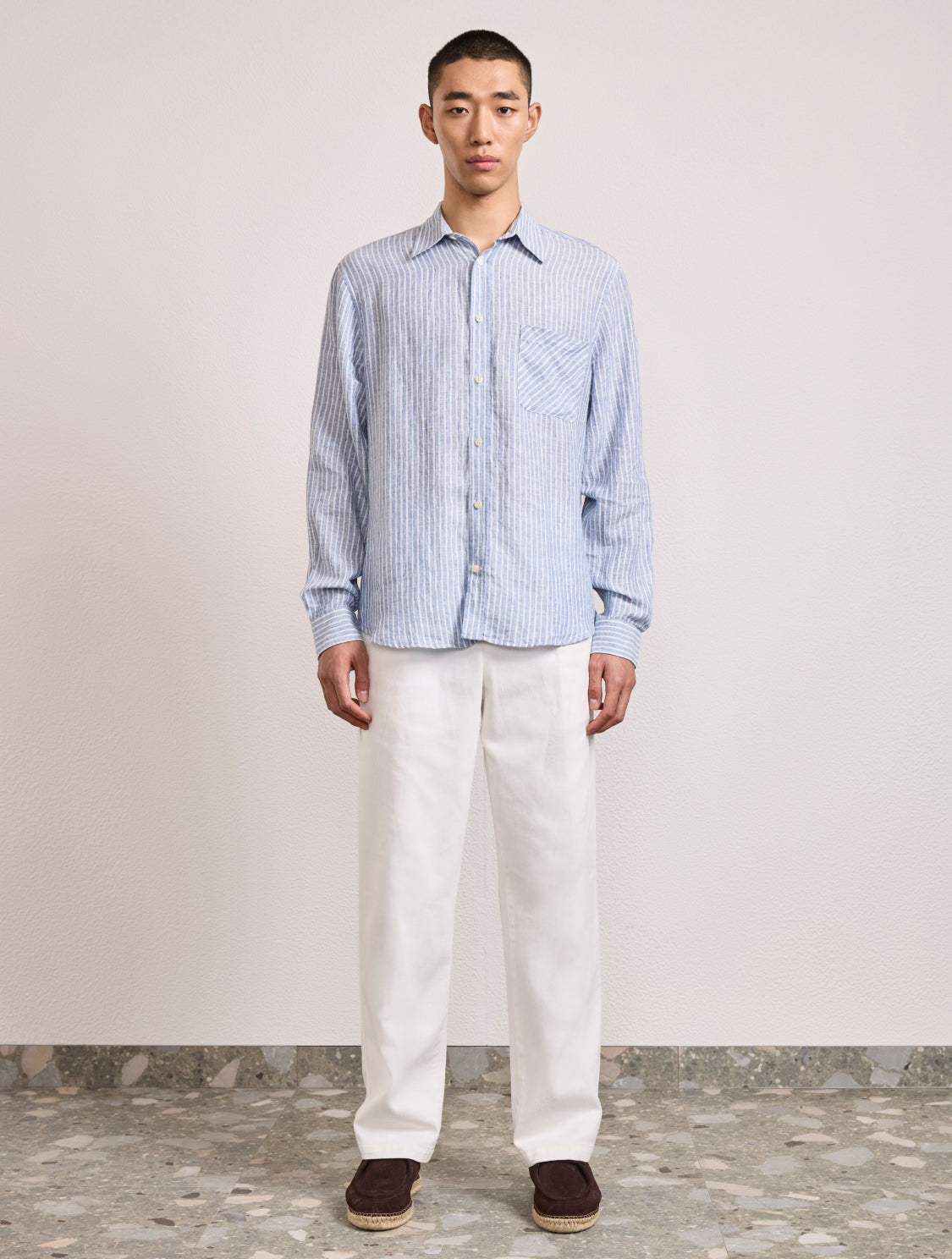 Telles is a relaxed fit long-sleeved linen staple, crafted from a beautiful blend that's finished with Aloe Vera for a luxurious on-skin feel. Fine stripe detailing and a classic point collar, add a sartorial touch to Telles' relaxed silhouette, designed for daily wear.