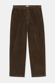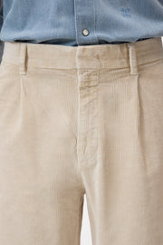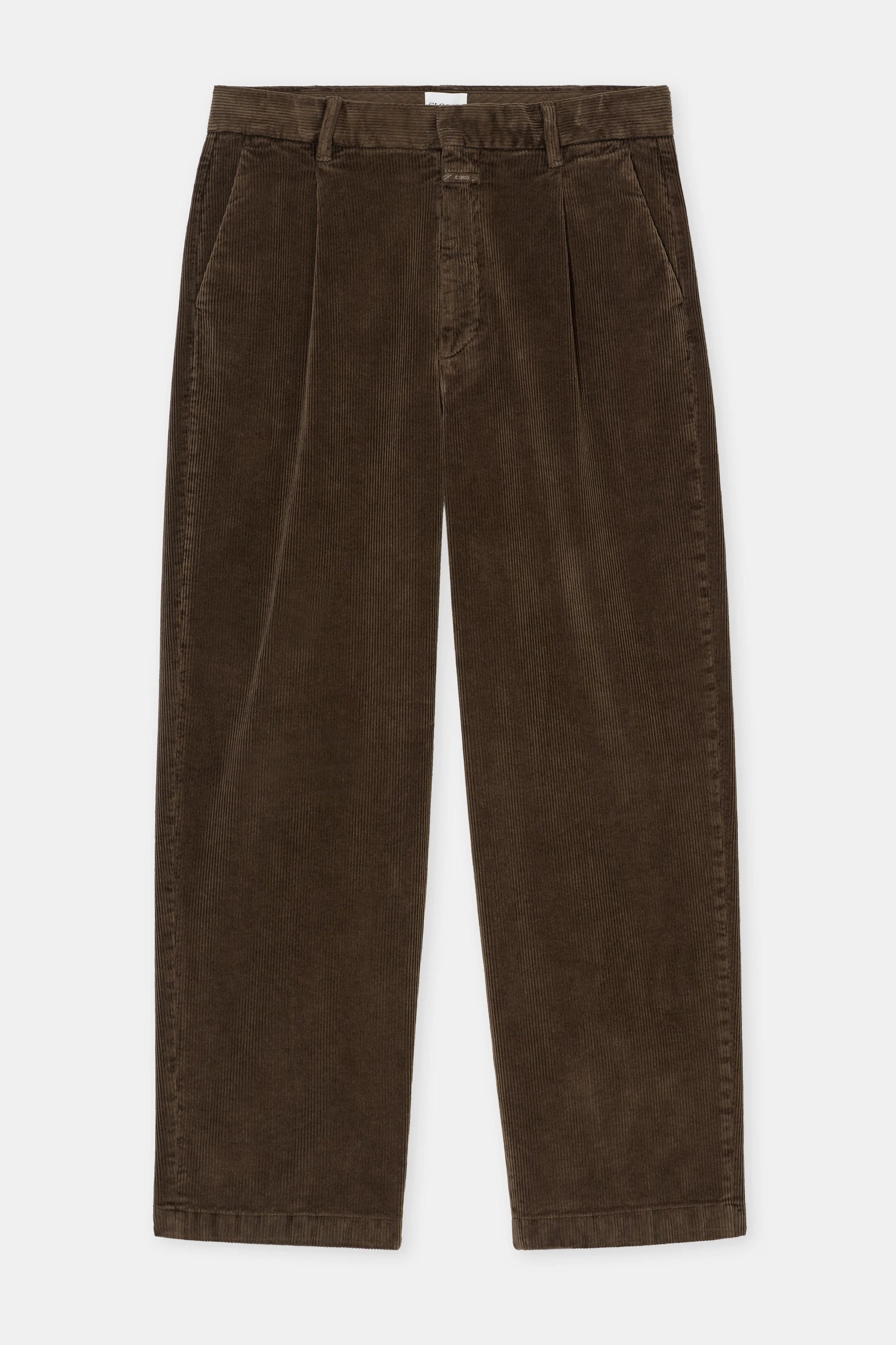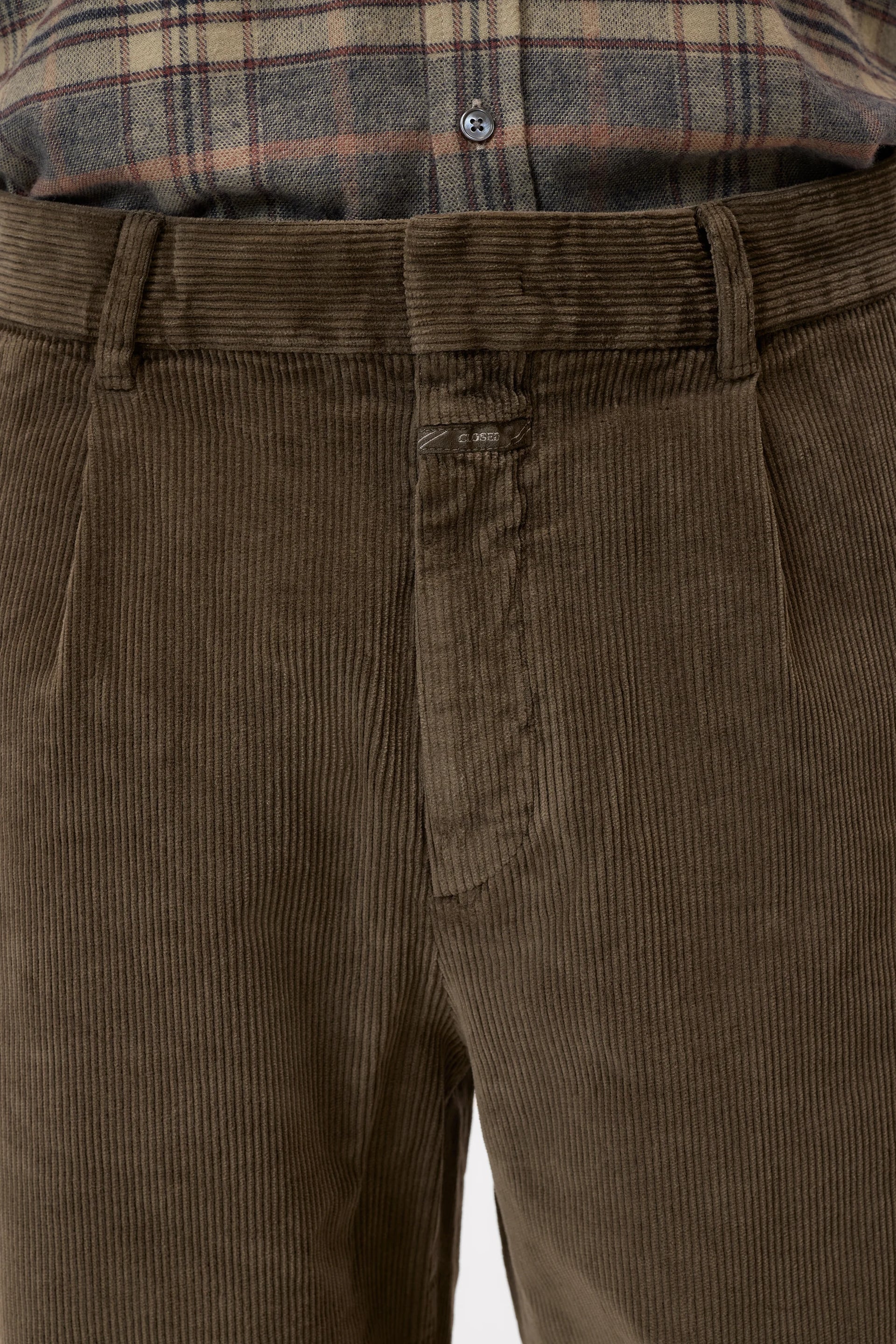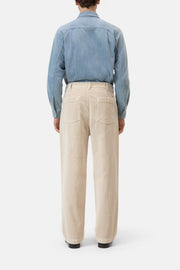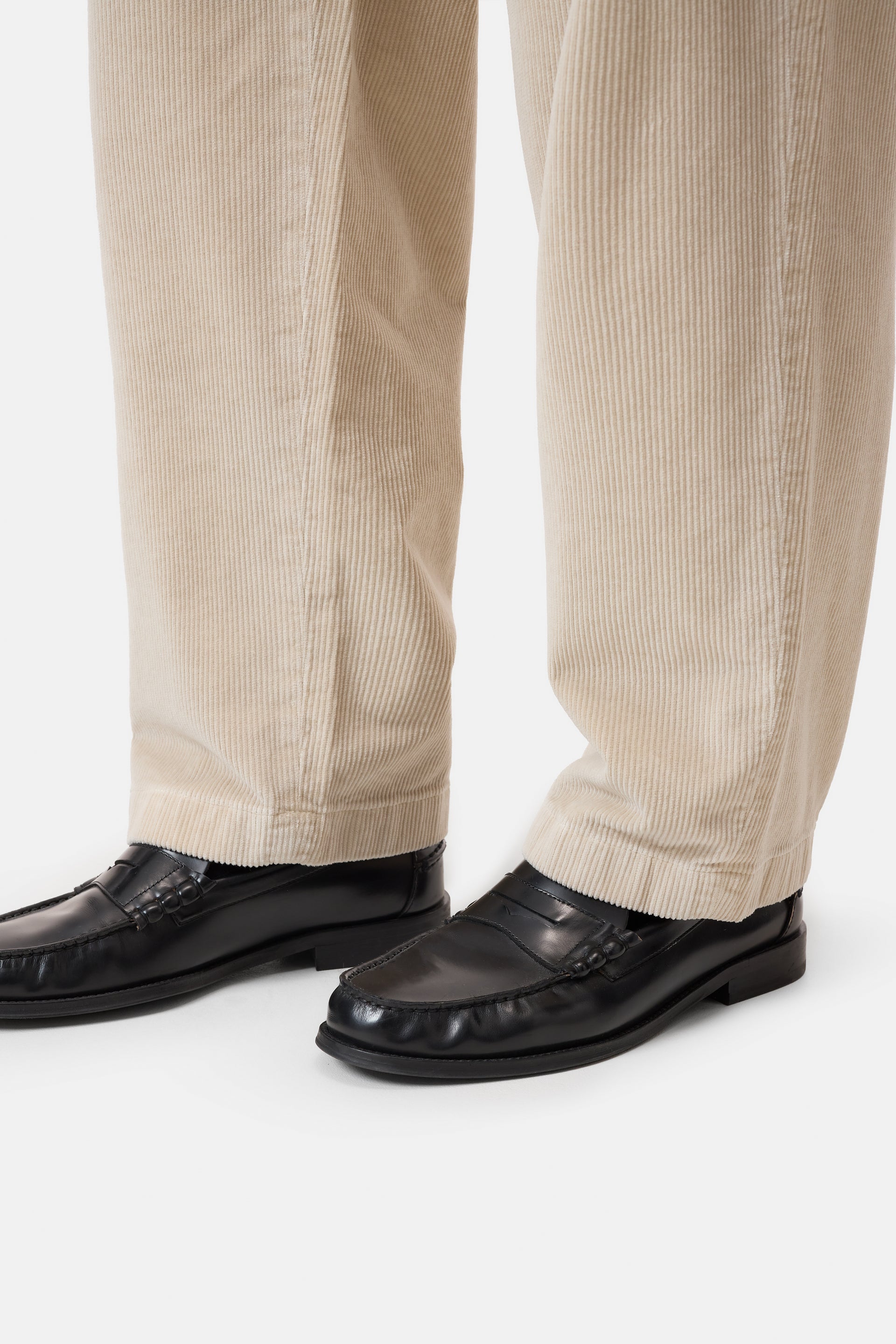 For these high-cut trousers with a straight leg, we chose an Italian wide cord with a soft feel and light stretch. The subtle used look is created by a special Antique Dye process. With concealed hook-and-hook closure, wrop fold and workwear-inspired back pockets, the pants combine comfort and style.