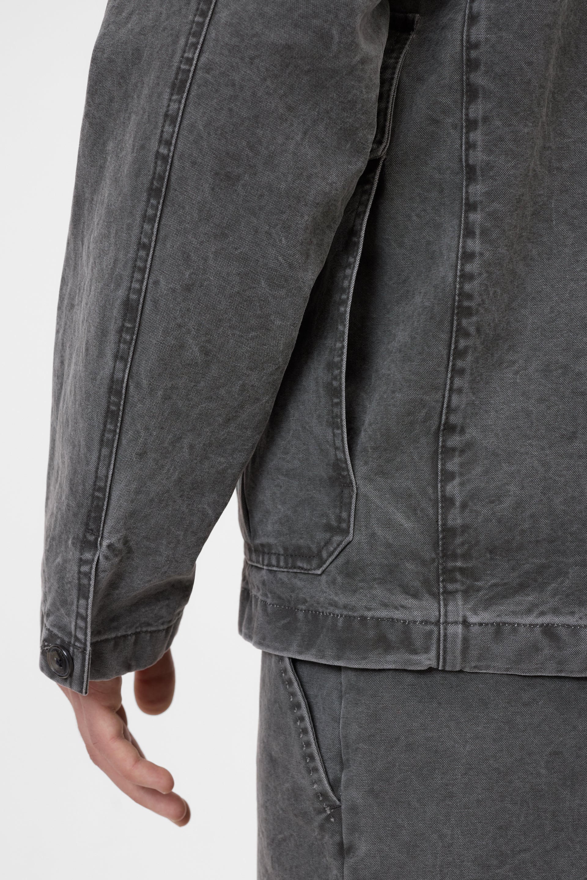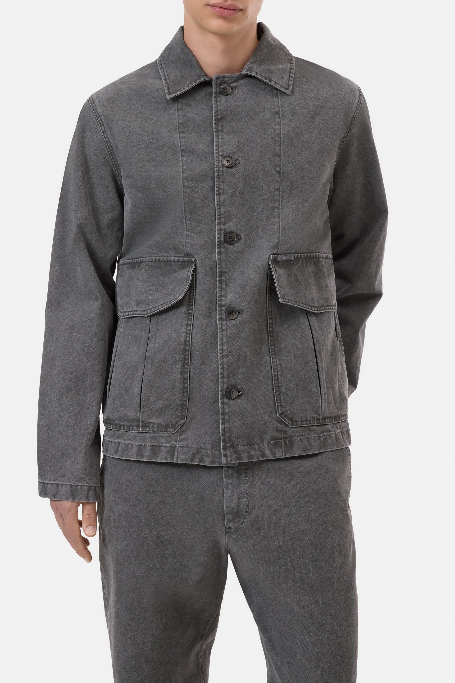 Our cargo jacket in Italian cotton canvas has a regular fit and a soft, washed feel. With full-length button placket, large flap pockets with fly label and straight hem. The pigment coloring gives it an individual look.