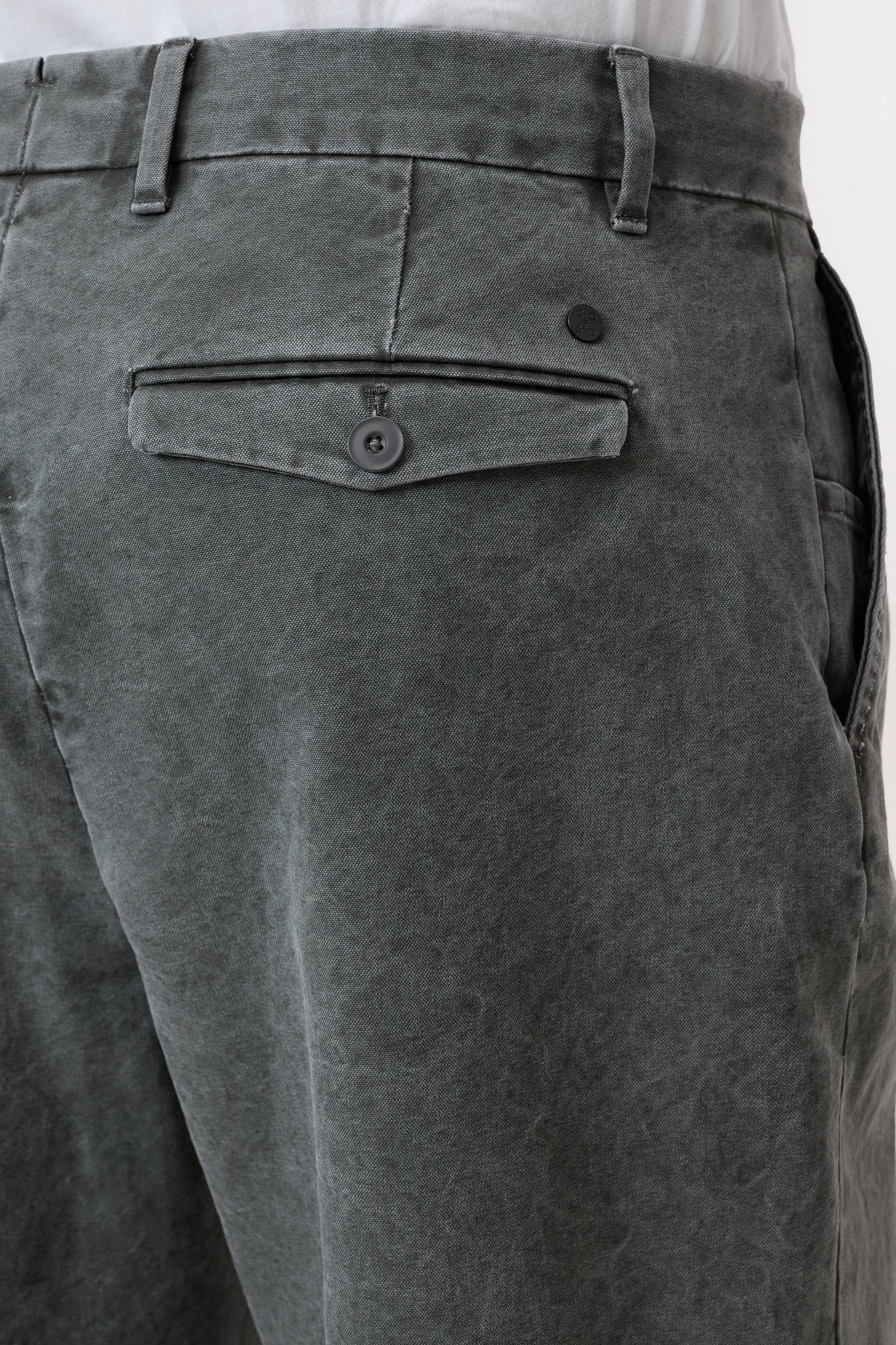 Relaxed trousers with a high waist and straight leg. Made from heavy Italian cotton canvas with special used washing process for a soft, worn look. The pigment finish gives character.