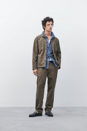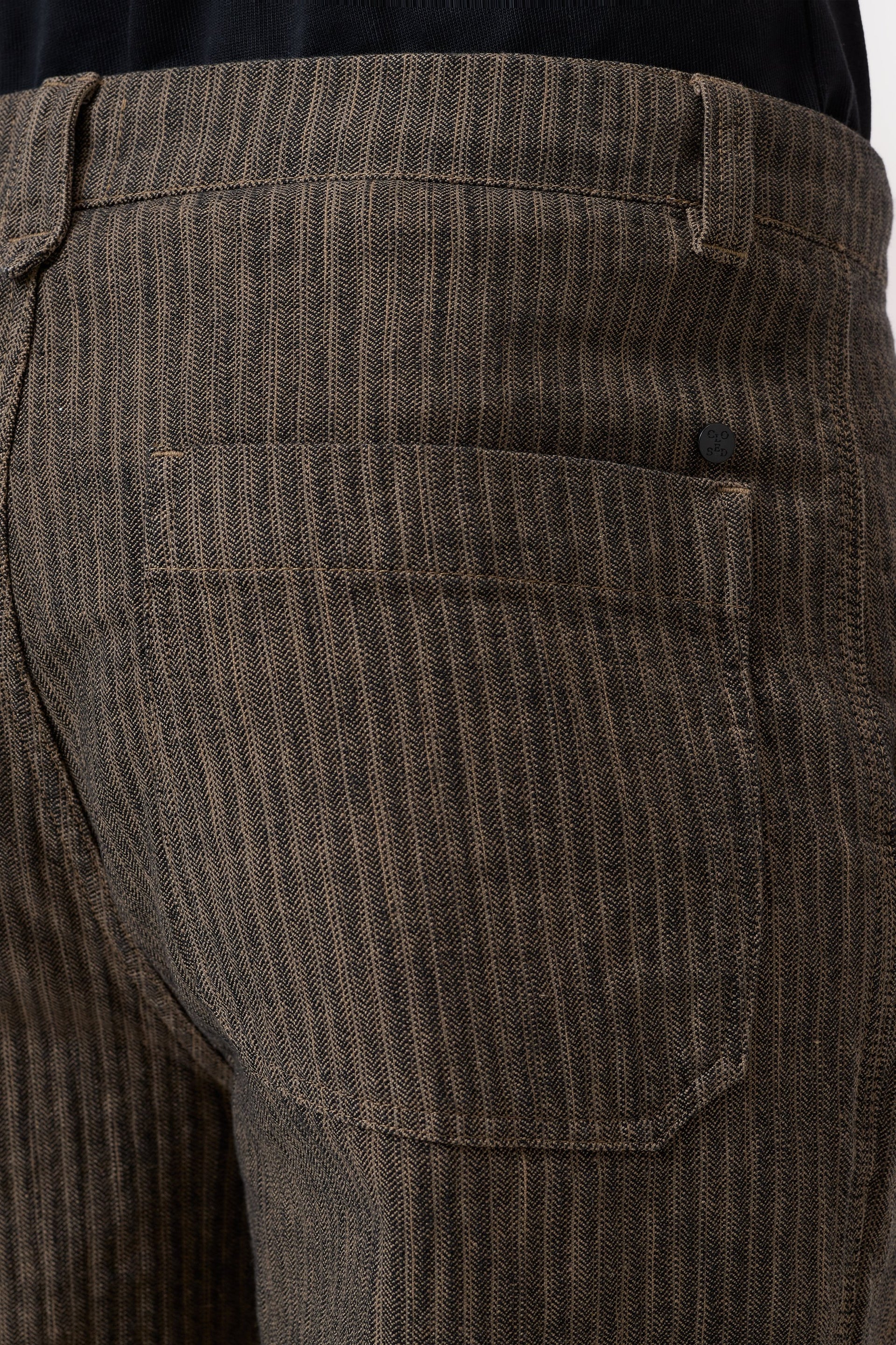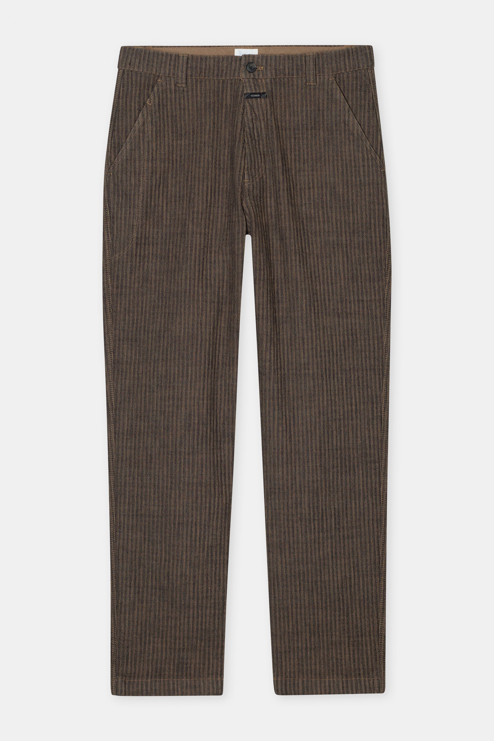 Made from exclusive two-tone herringbone fabric with a garment-dye finish for a lightweight used look: Our relaxed-fitting Worker Chinos have a knife compartment on the right leg and reinforced hand pockets.