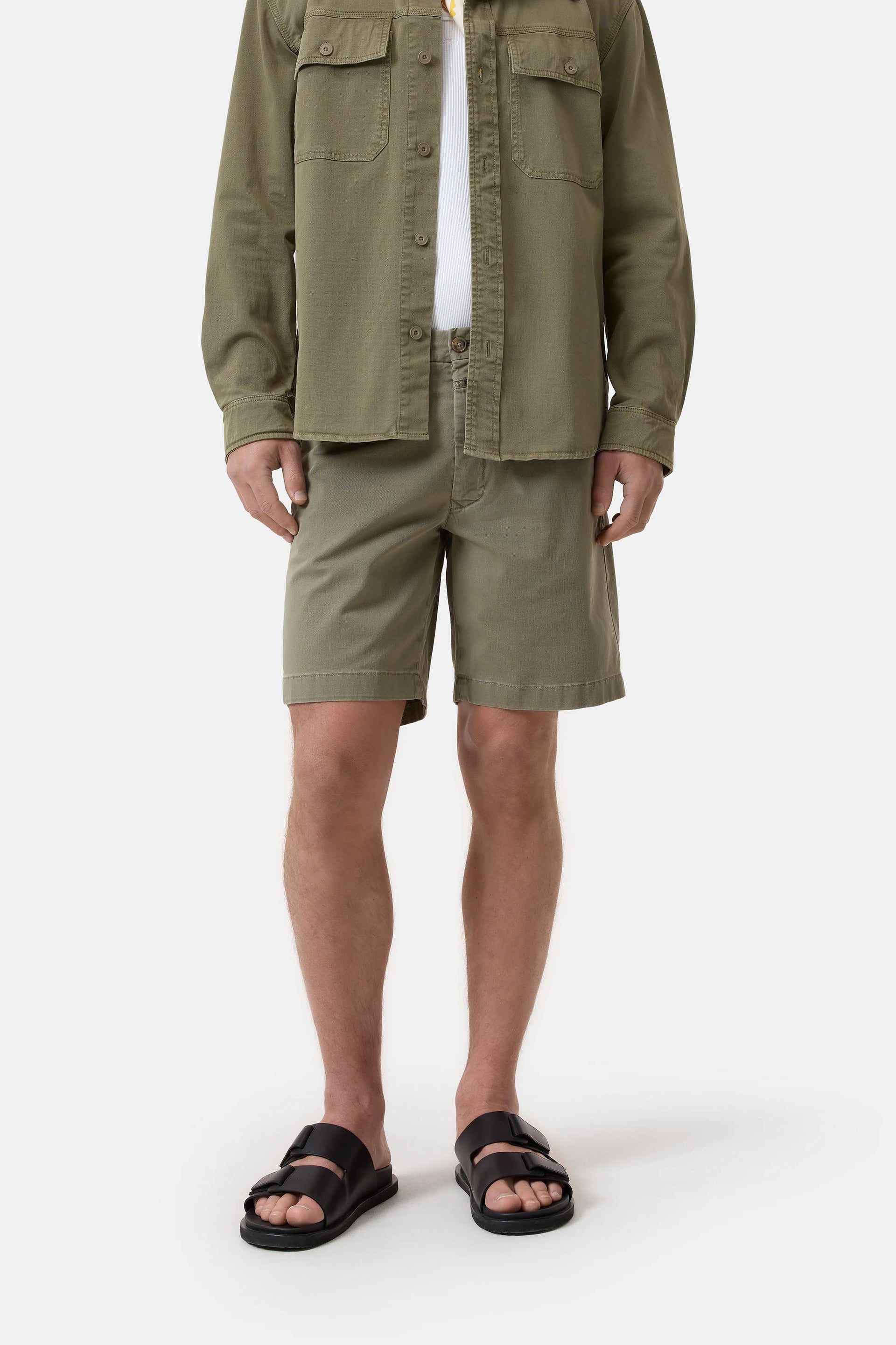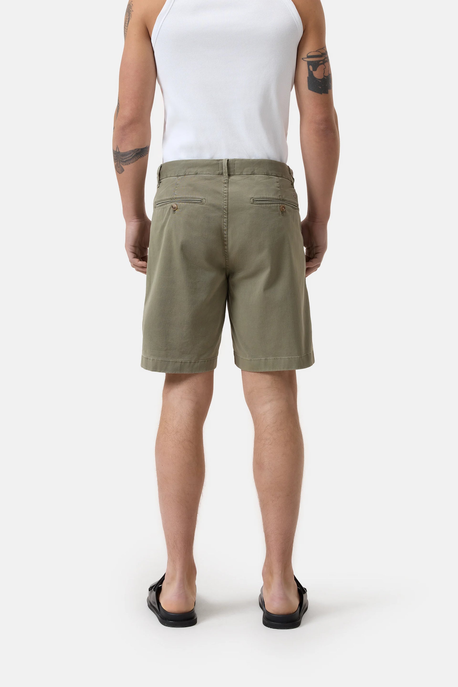 These shorts are made from a soft chino fabric woven from organic cotton and elastane. Featuring a horn-look button and Fly label, they come with side pockets, buttoned back pockets, and a garment-dye finish.