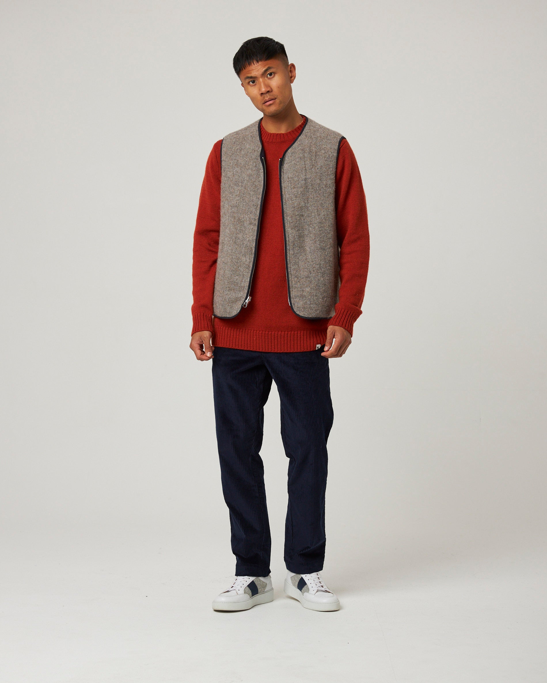 The Rex reversible gilet is a versatile layering piece designed to enhance your wardrobe. One side of the gilet is crafted from 100% premium wool, while the other features showerproof waxed cotton, making it highly adaptable for any season and outfit. This lightly padded men's gilet also includes two functional pockets, enhancing its practicality and style.