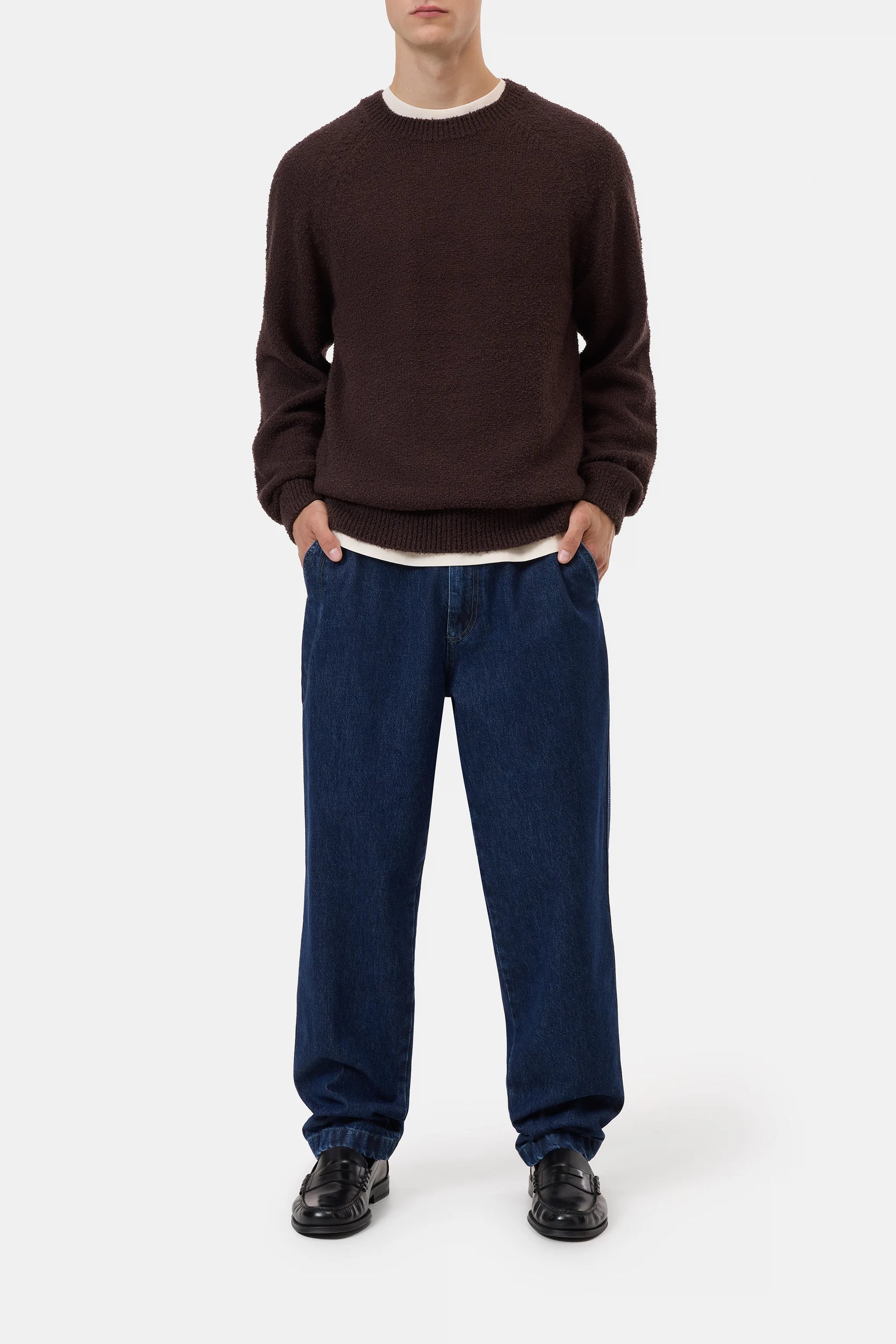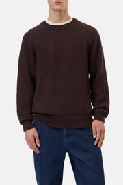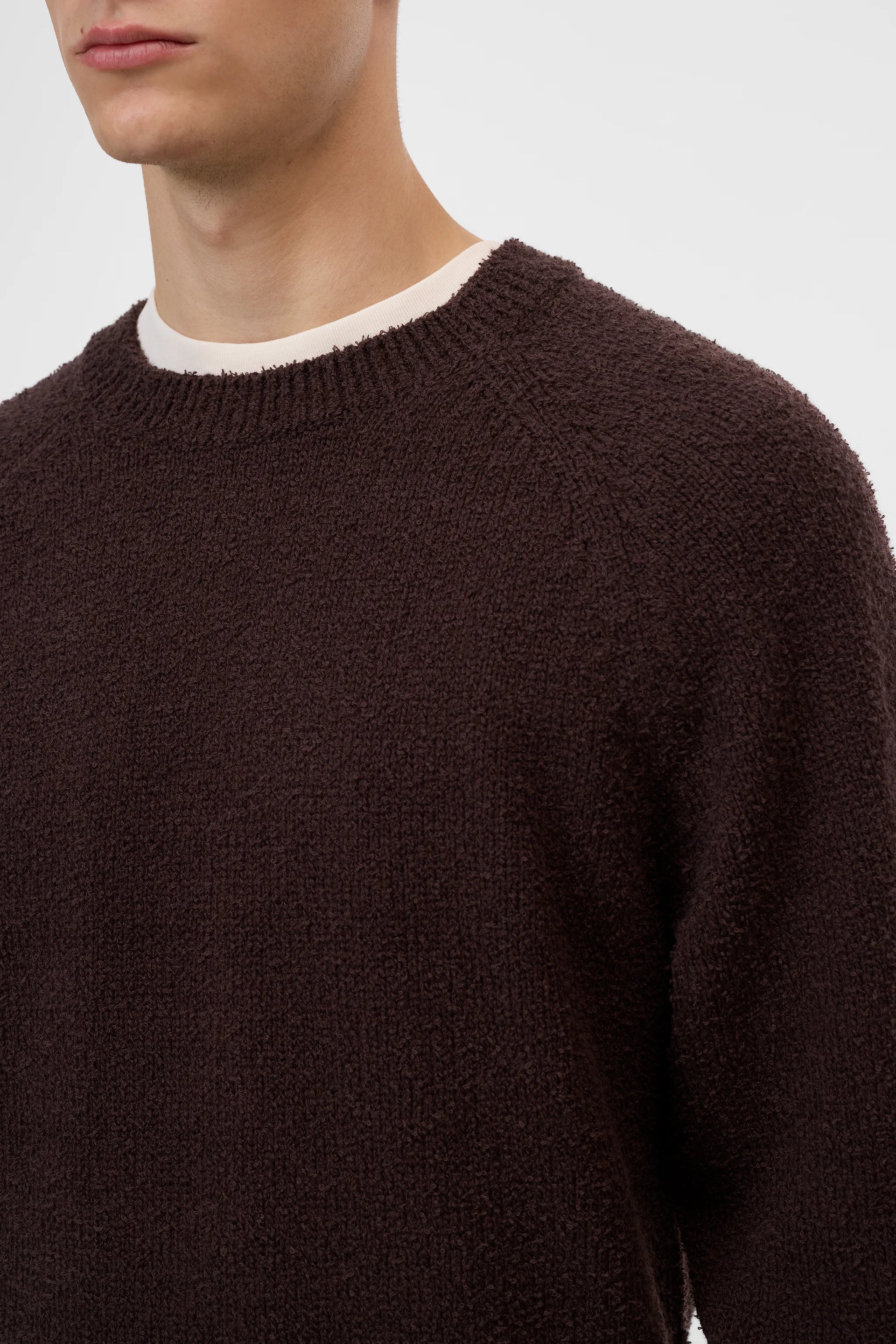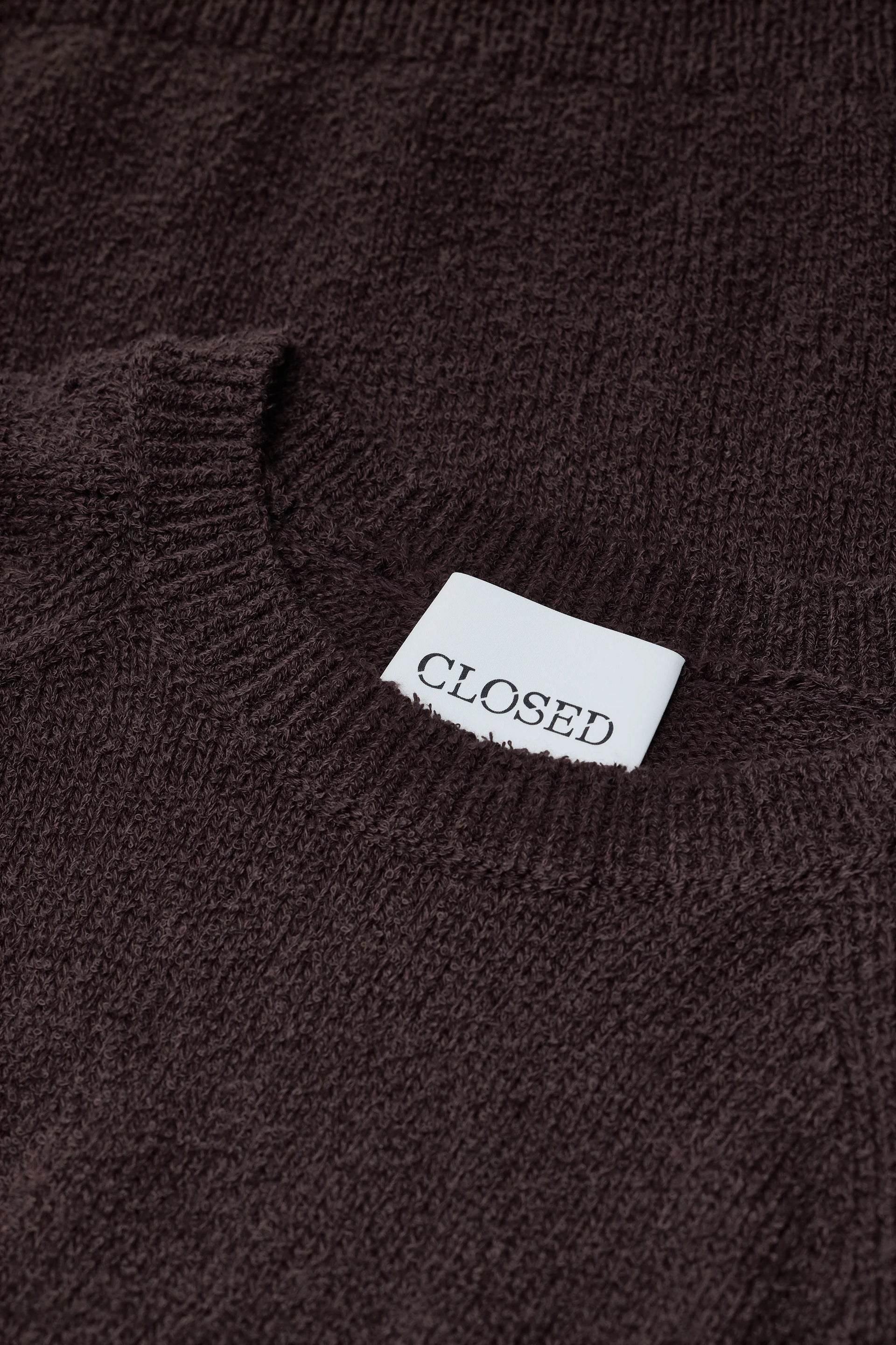 Our crew neck knit sweater in a classic regular fit with a clean look has a special structure through a mixture of twisted wool-cotton and cotton bouclé yarns. Ribbed neckline, cuffs and hem.