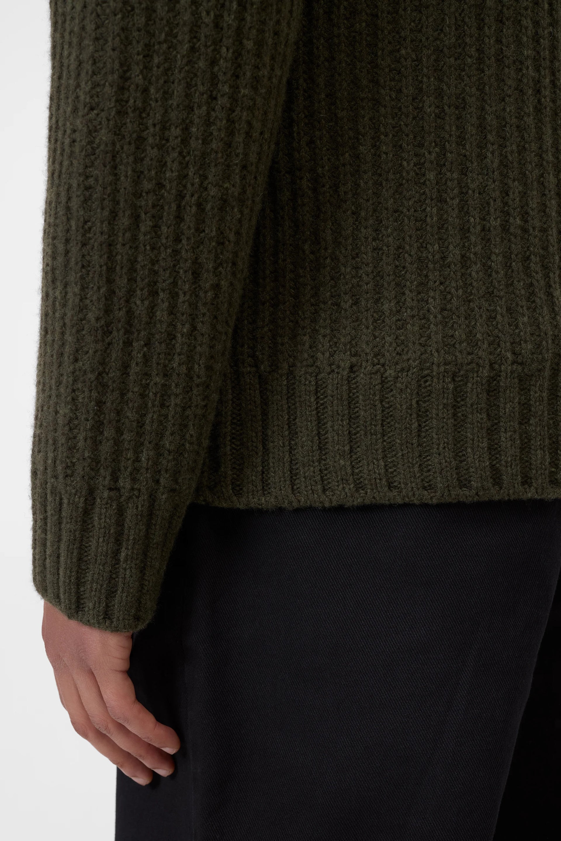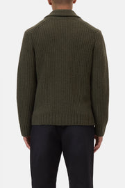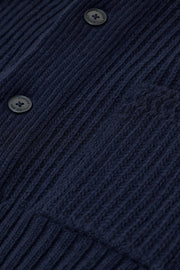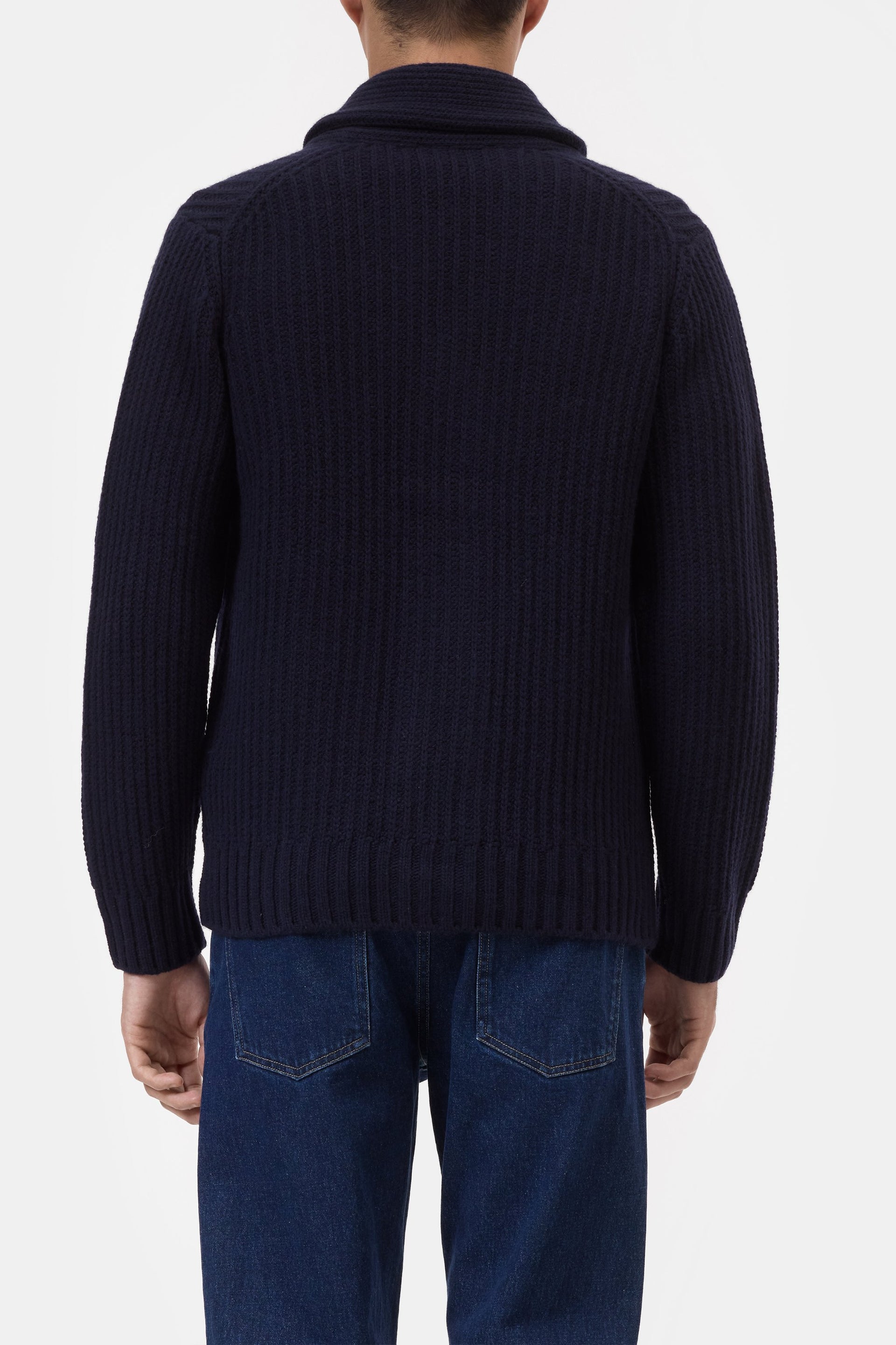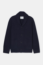 The cardigan is made of pure, soft Italian wool yarn in different knitting techniques, which gives it a special texture. With regular fit and characteristic shawler collar. The equipment includes buttons in horn look, ribbed cuffs on sleeves and hem as well as two patch pockets.