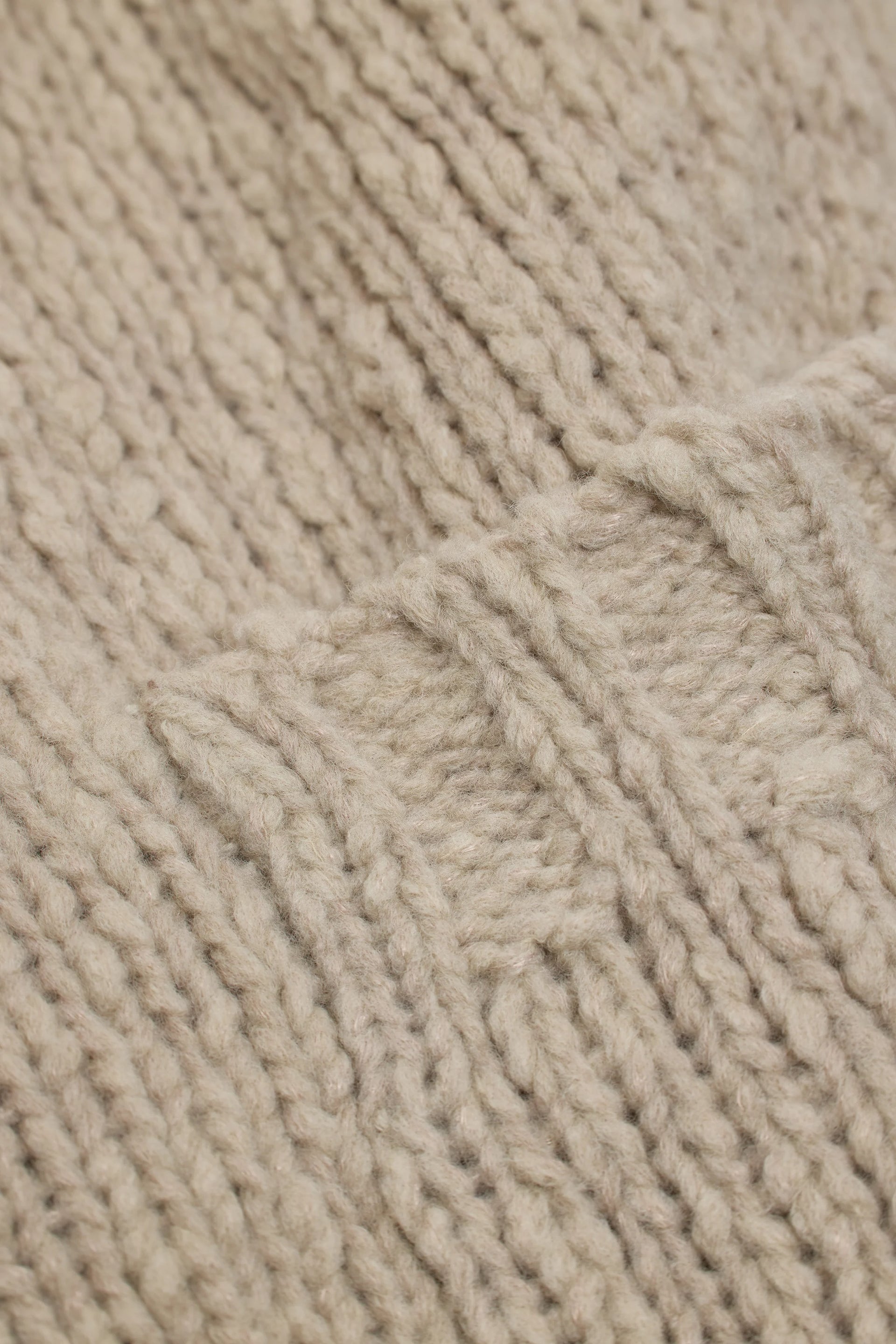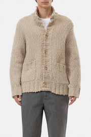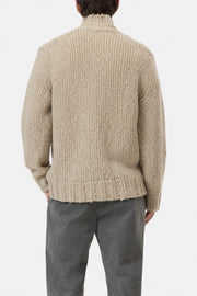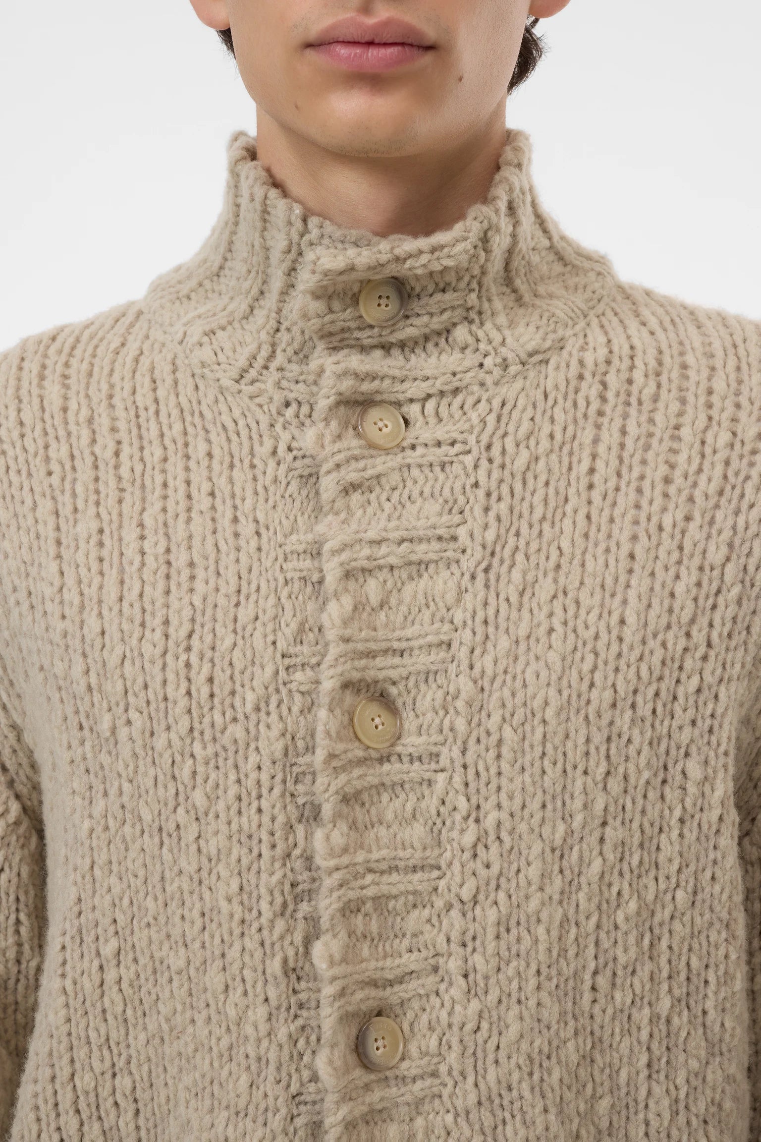 Our turtleneck cardigan has a full-length button placket, patch pockets and a ribbed collar, ribbed cuffs and hem. The lively yarn structure provides an irregular structure, as if knitted by hand.