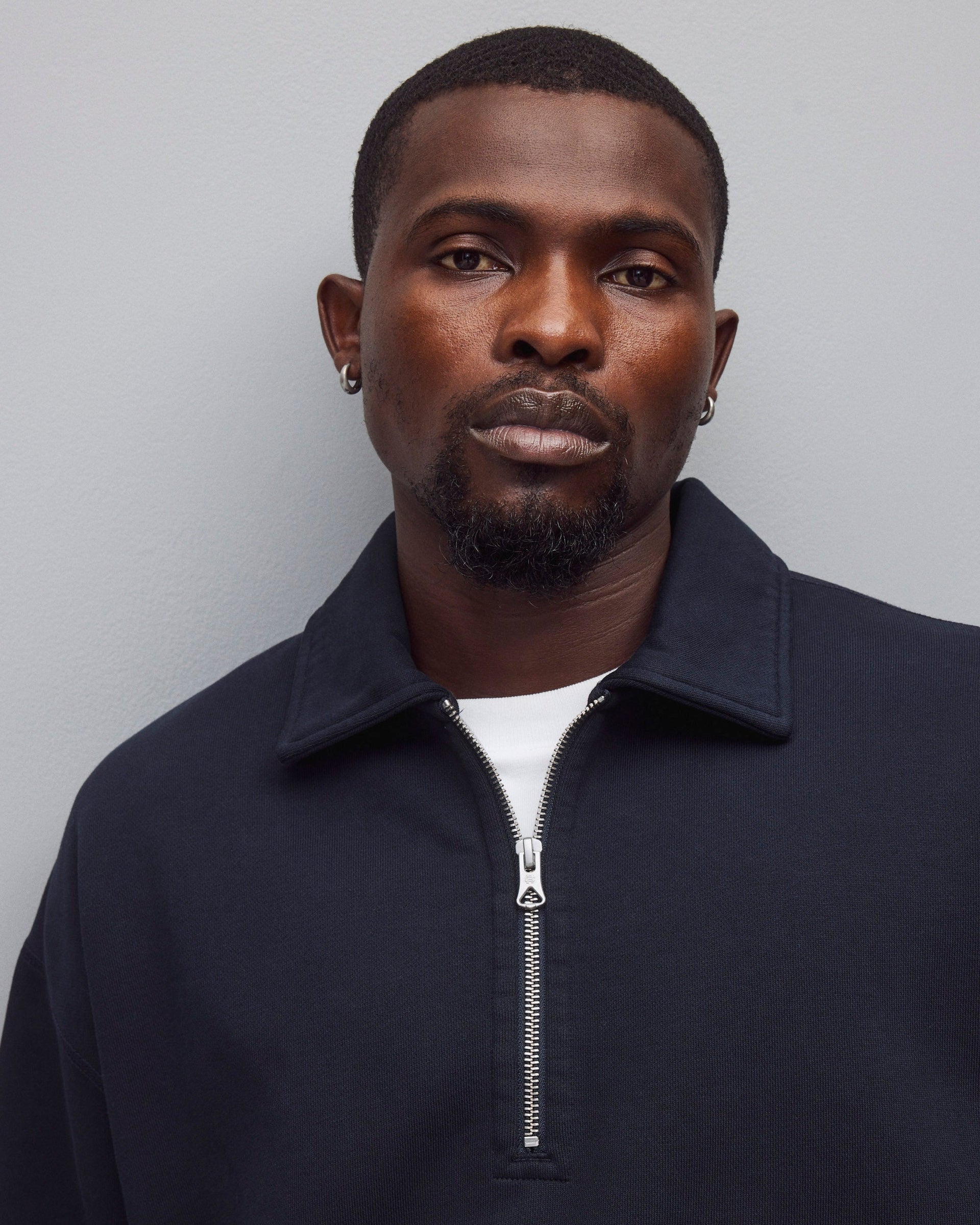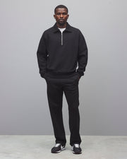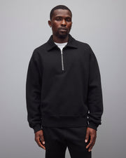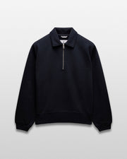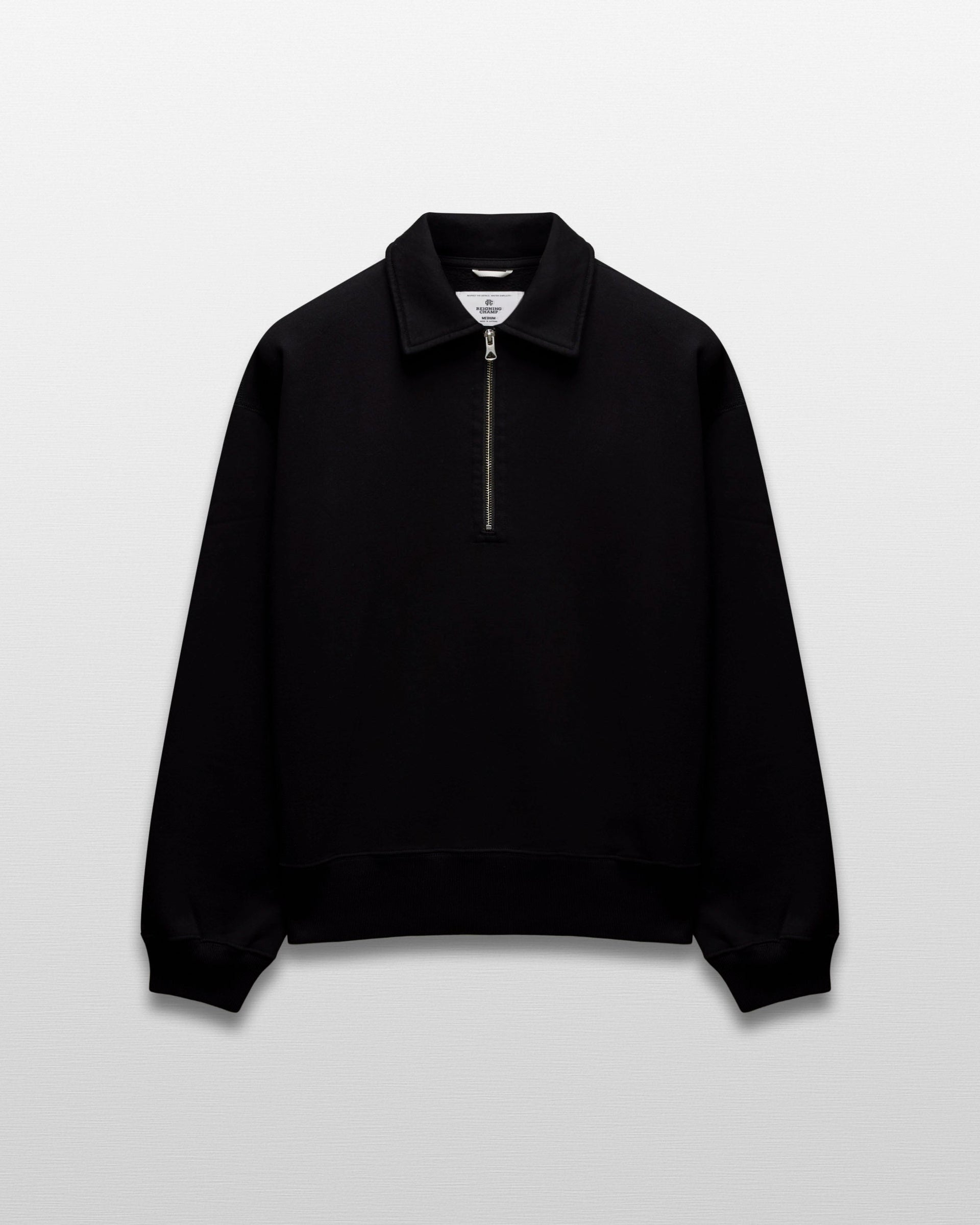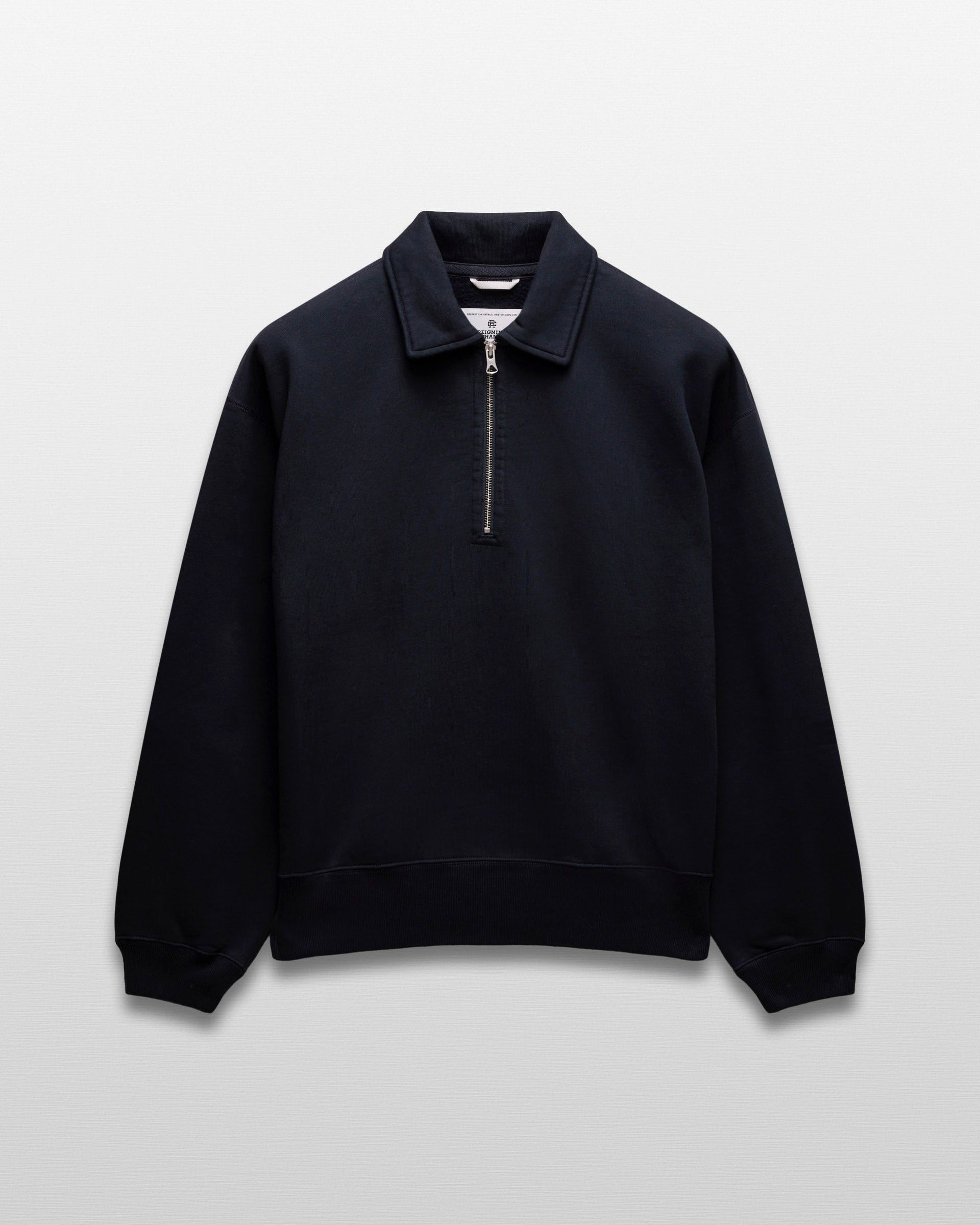 This collared half-zip is made from a lofty fleeceback fabric chosen for its soft interior feel and insulating properties. Designed in a relaxed fit with drop shoulders and generous proportions. Finished with a pointed collar, YKK heavy-gauge metal zipper, set-in sleeves, rib trim, and flatlock seams for lasting durability.