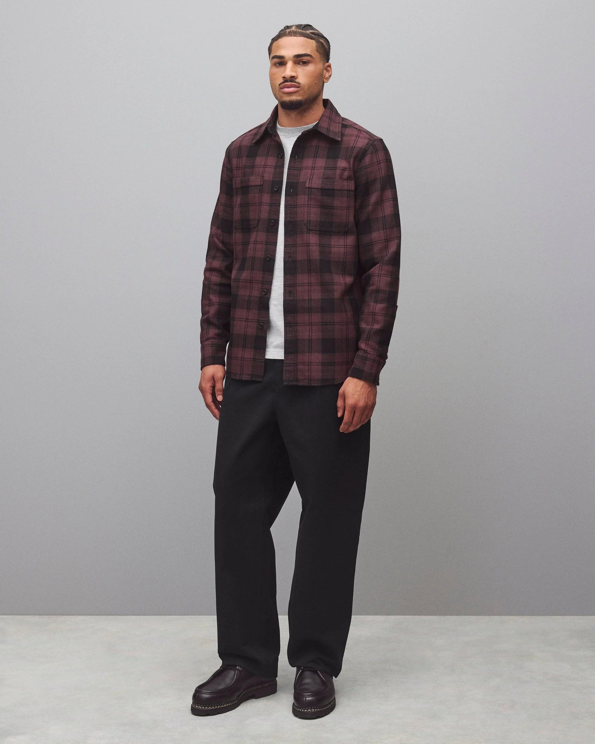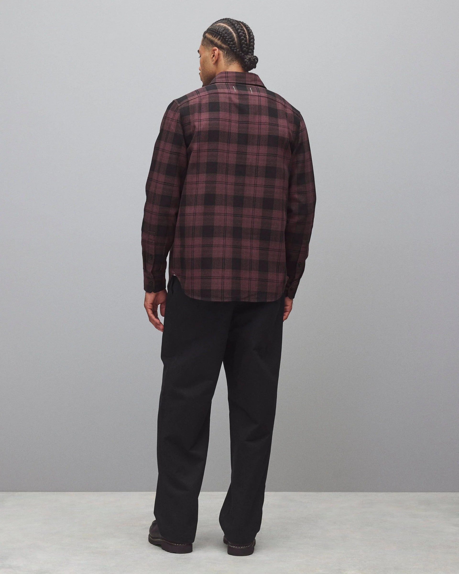 REIGNING CHAMP COTTON PLAID UNION STANDARD SHIRT - OXBLOOD