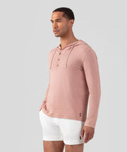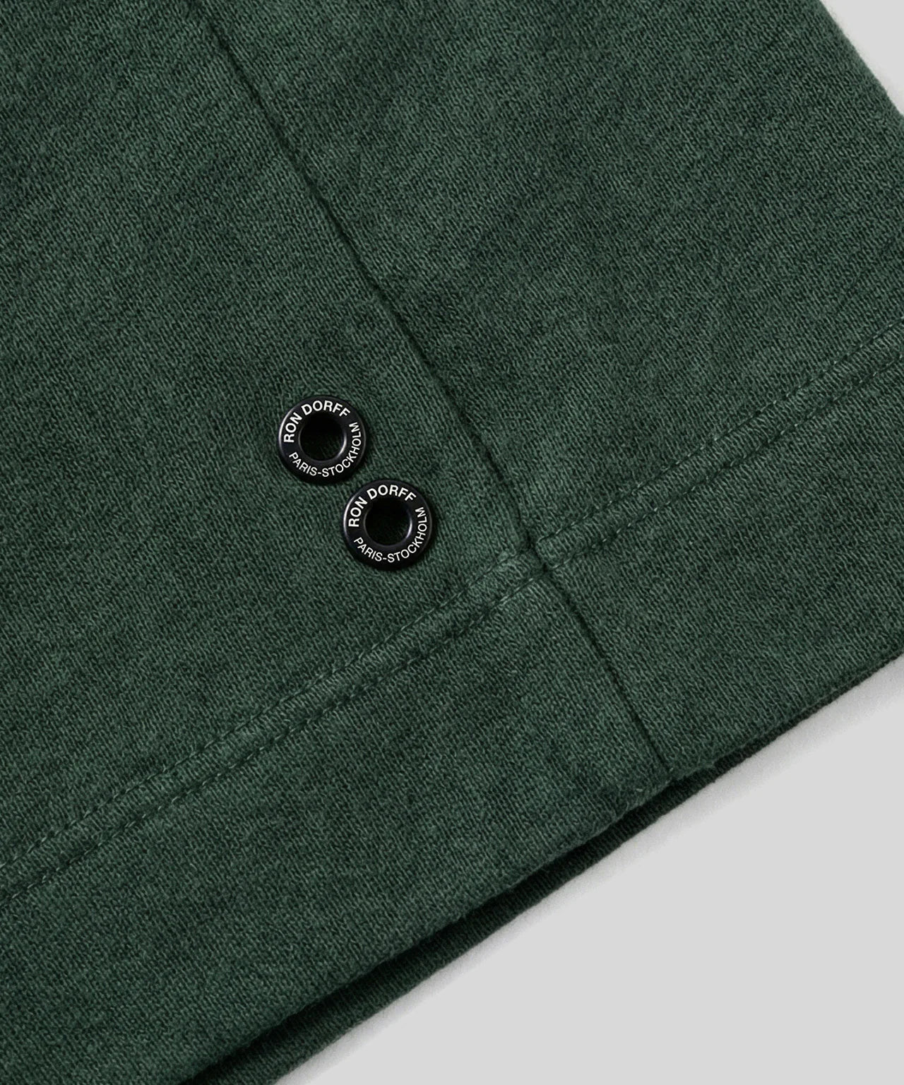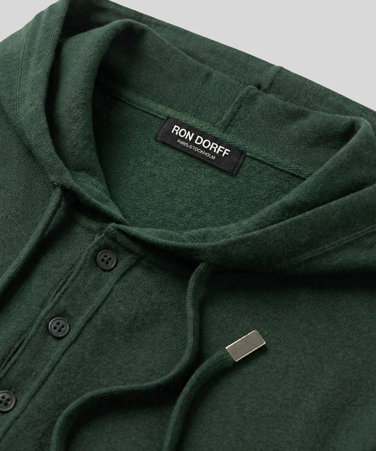This new lightweight hoodie is made in a luxurious cotton-silk mix ensuring comfort with a touch of sophistication. Featuring four front buttons, drawstrings and the two discrete black-lacquered RD eyelets on the side.