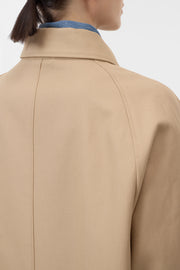 Our classic coat combines elegance with tailoring in high-quality, double-woven cotton. The coat made in Romania is characterized by clear lines, concealed buttons, raglan sleeves and precise stitching.