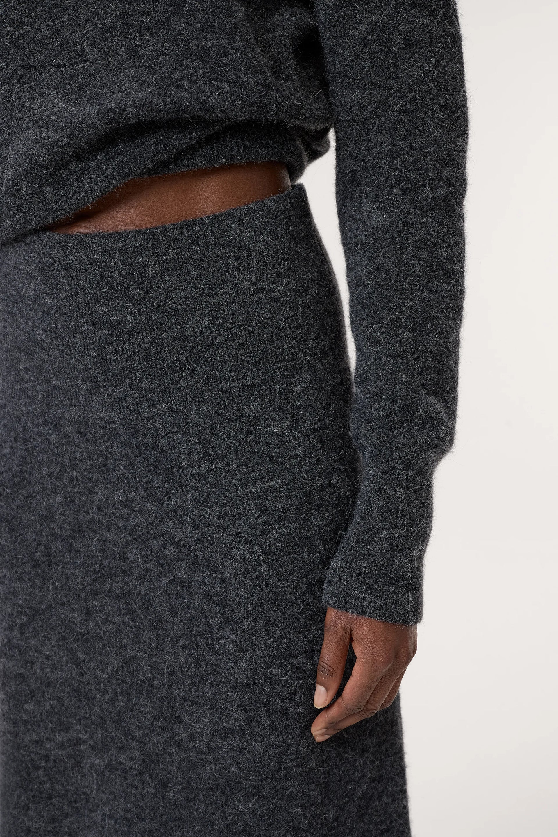 CLOSED WOMENS LONG KNIT SKIRT IN ALPACA-WOOL BLEND - DARK GREY MELANGE