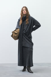 This knitted skirt has a slim fit, high waist and maxi length. Made of a soft alpaca wool blend yarn with a little elastane for shape and comfort, it comes with a mintral slit on the back and an extra high waistband.