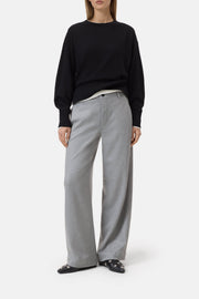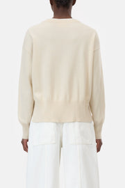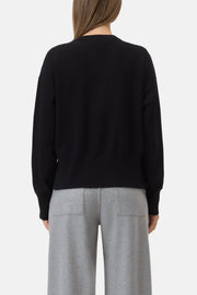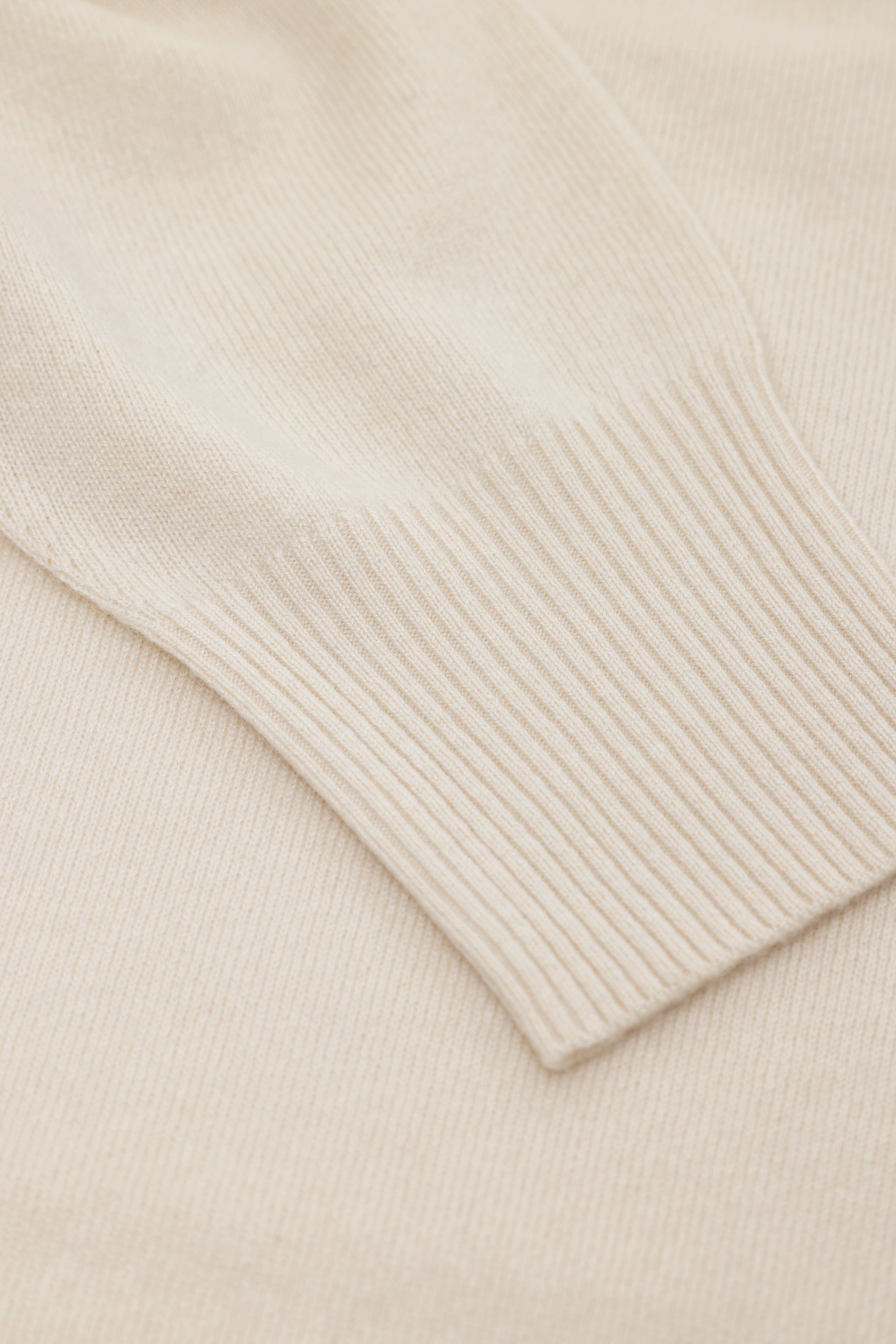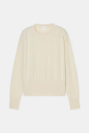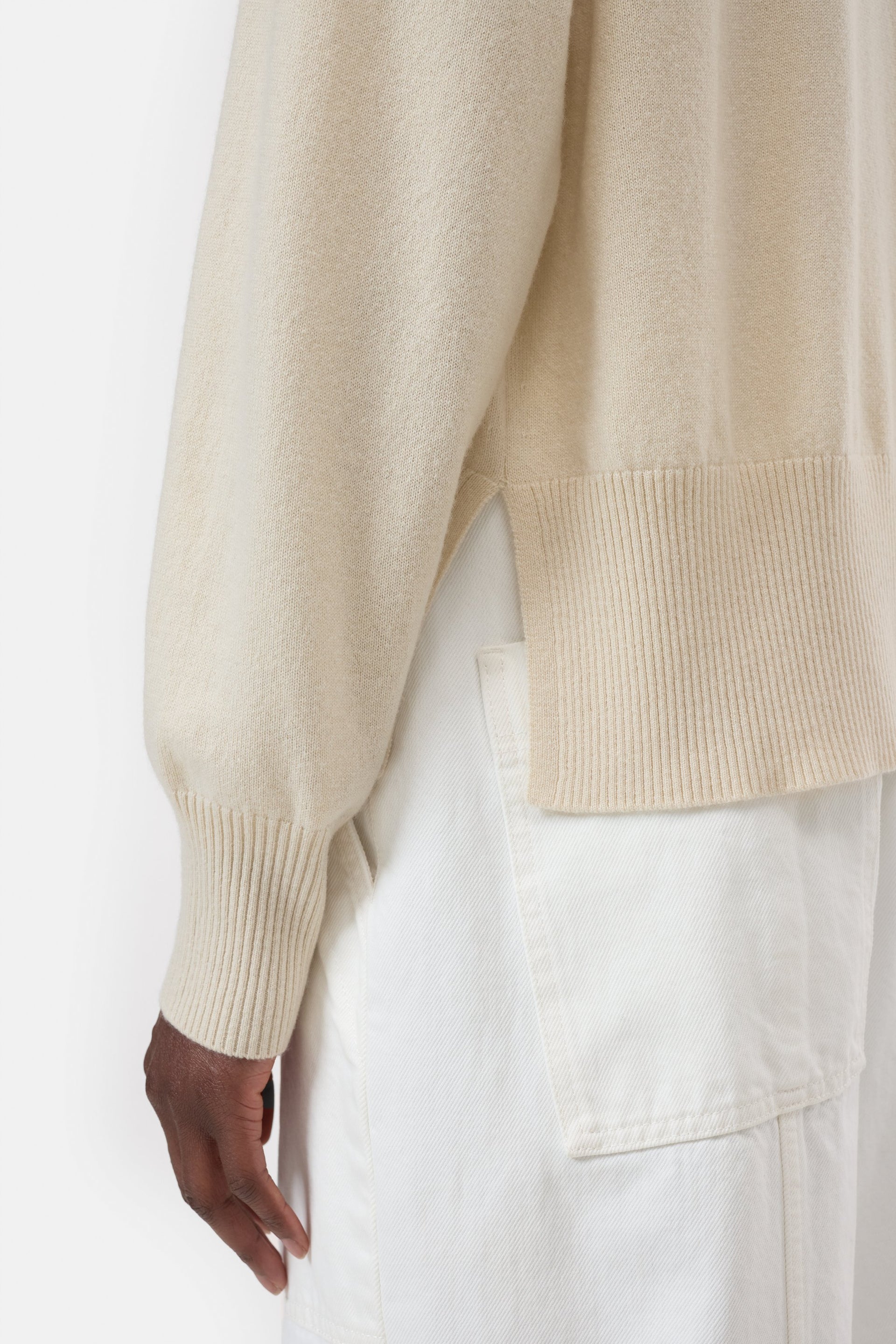 This crew neck sweater made of 100% cashmere highest quality with a fineness of 15.5 to 15.8 microns has a regular fit and a boxy cut. His design features include forward offset shoulder seams, a special seam construction and side slits at the hem.