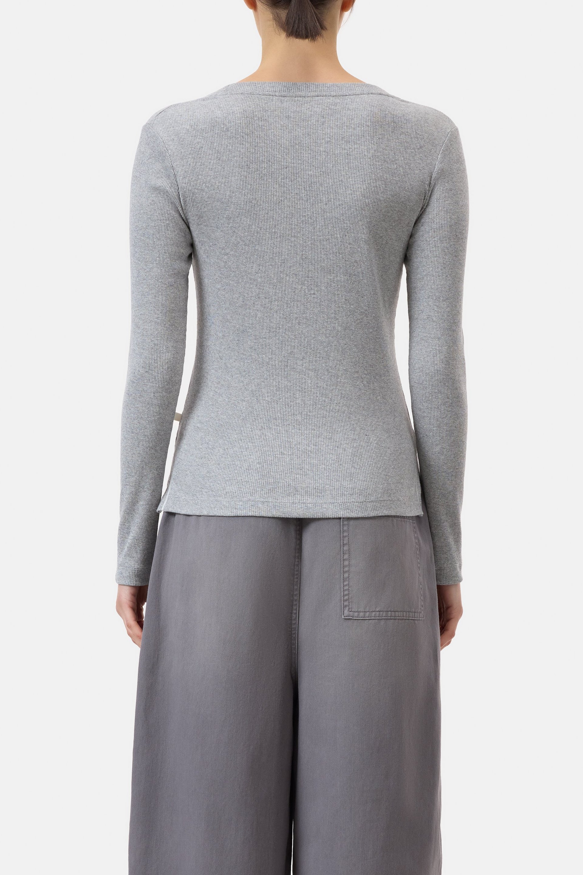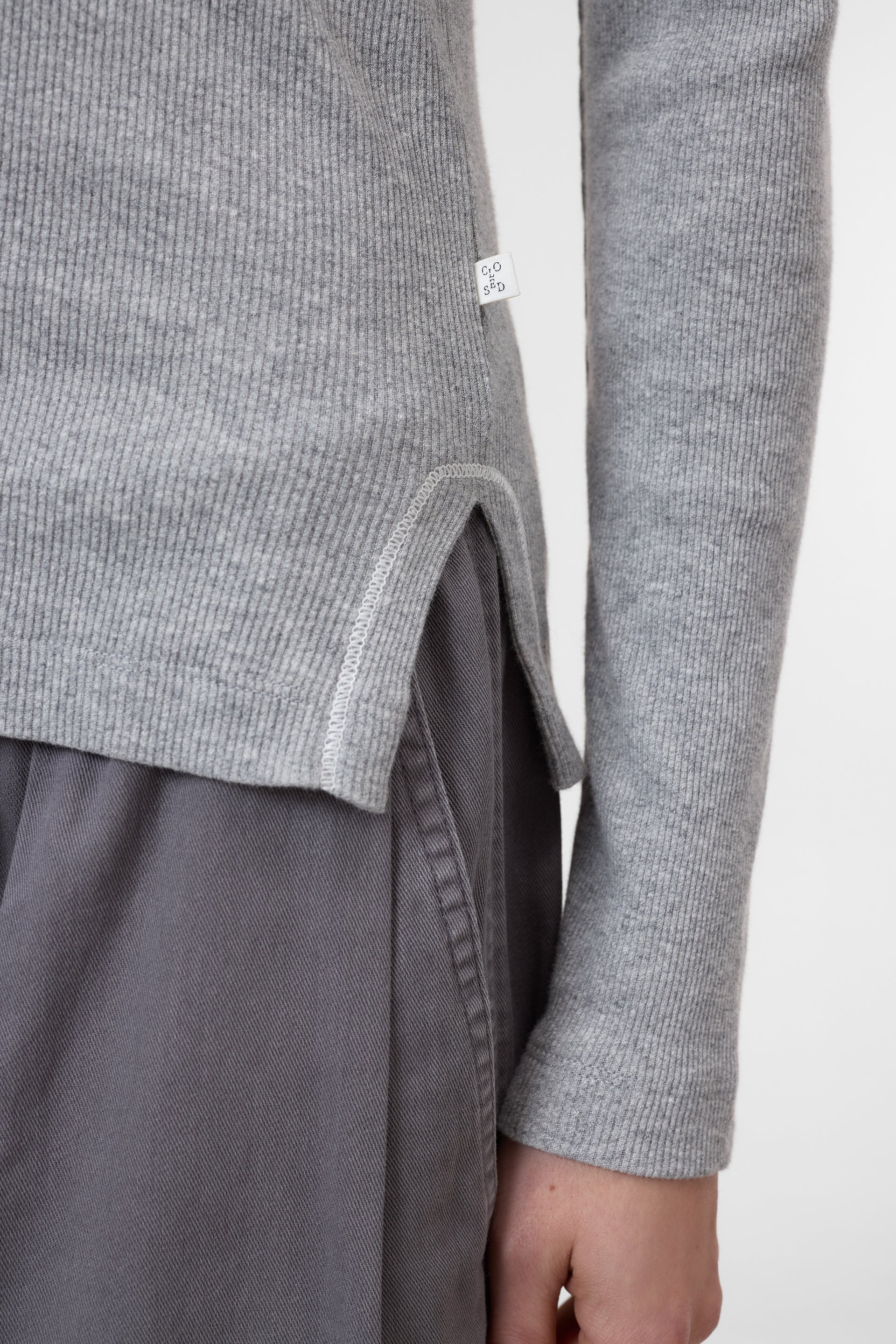 CLOSED WOMENS RIBBED COTTON L/S - LIGHT GREY MELANGE