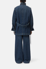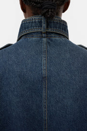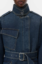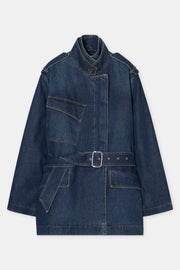 CLOSED WOMENS SHORT DENIM TRENCH COAT - DARK BLUE
