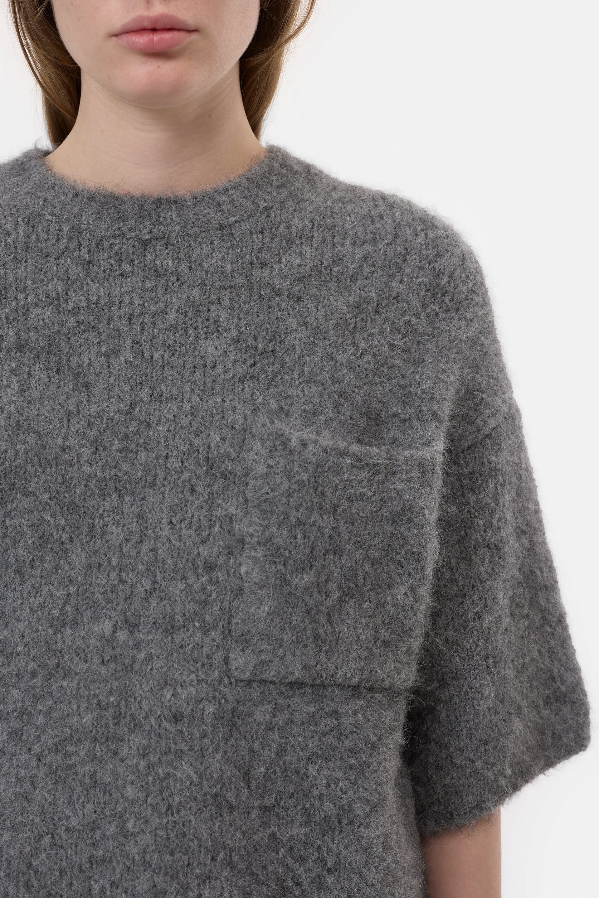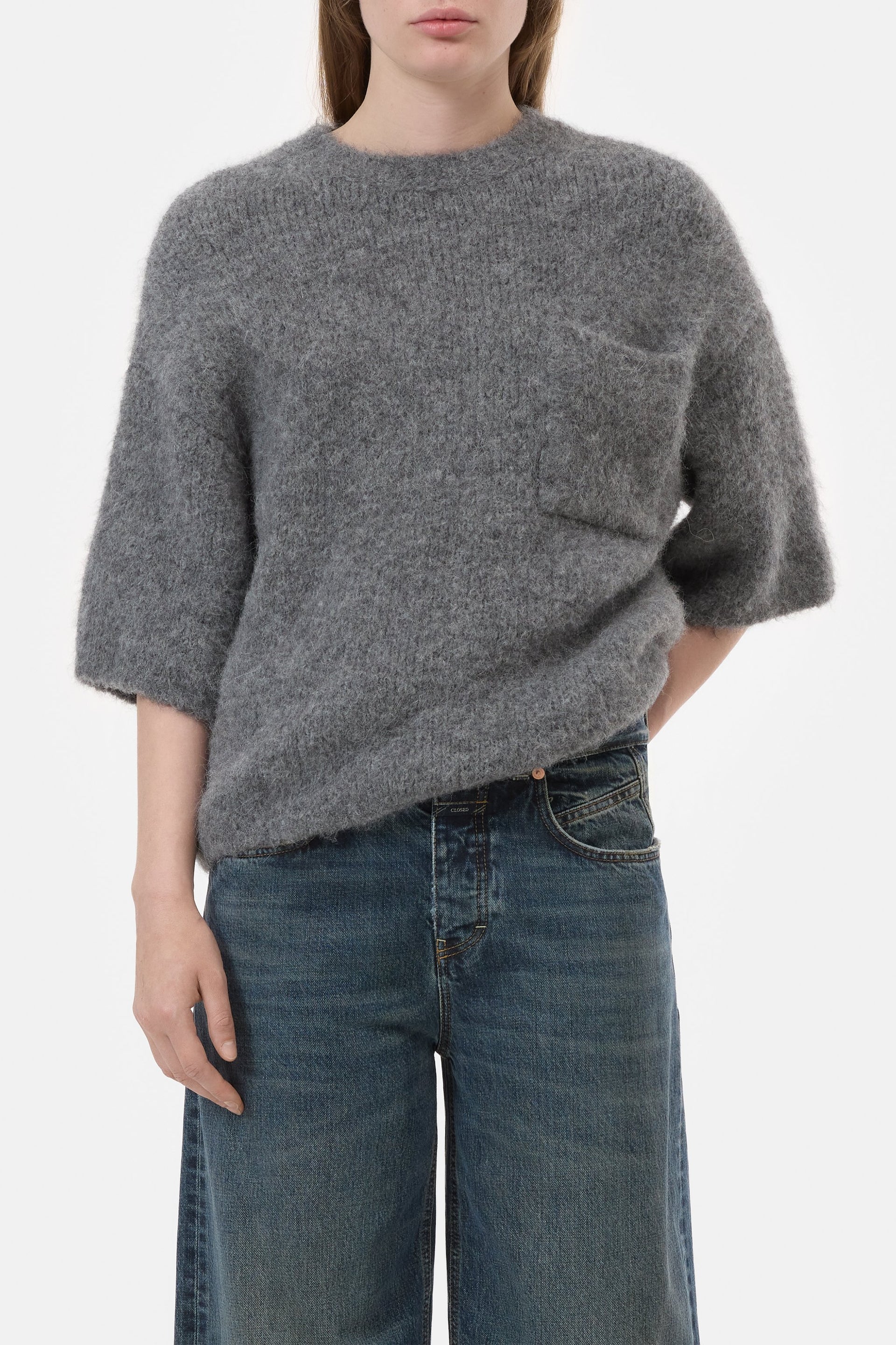 CLOSED WOMENS SHORT-SLEEVED ALPACA SWEATER - DARK GREY MELANGE