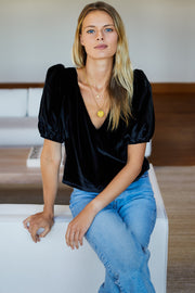 Black Silk Velvet, comfy-polish + party-ready. with Jeans. Luxe-Comfortable, special, festive. Made in NYC.