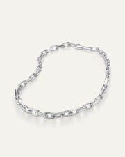 Crisp, faceted links secure around the neck with a hidden egret closure. Finished in high-polish silver.