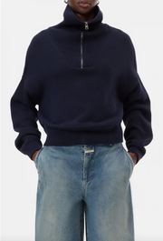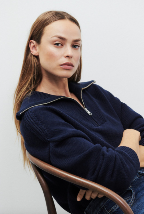 Our Troyer has a regular fit & shortened length for a modern look. Made of GOTS-certified organic cotton, the sweater offers a soft feel, while the special crochet creates a subtle contrast.