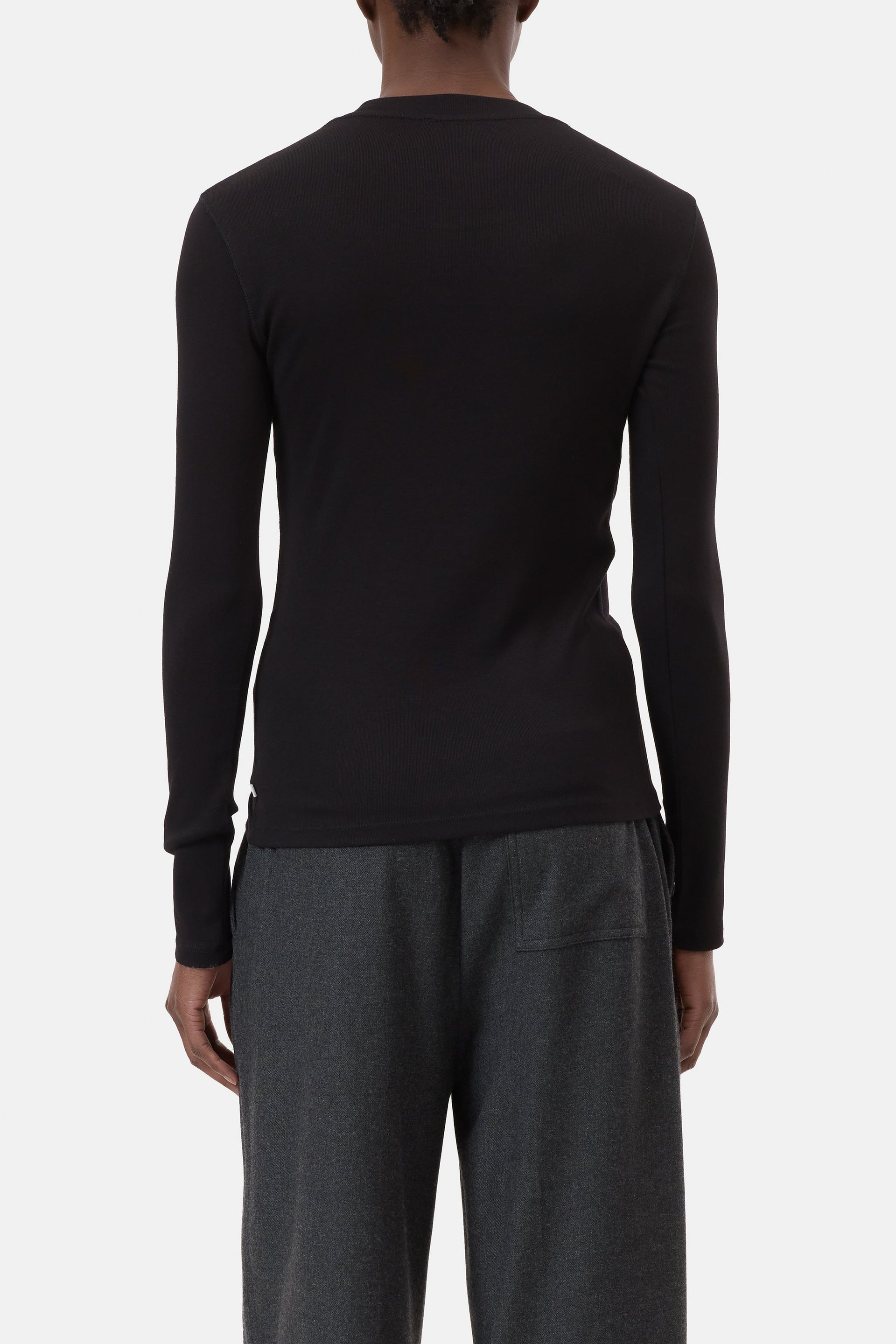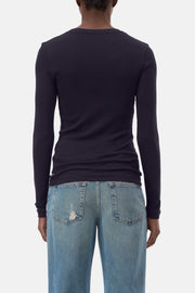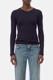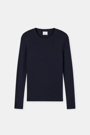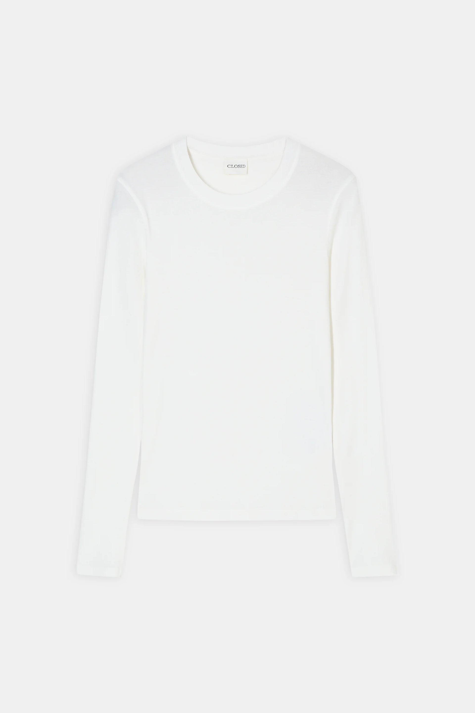 The long sleeve shirt is made of a soft cotton modal blend. The finely ribbed jersey structure with round neckline and straight hem completes the perfect basic shirt.