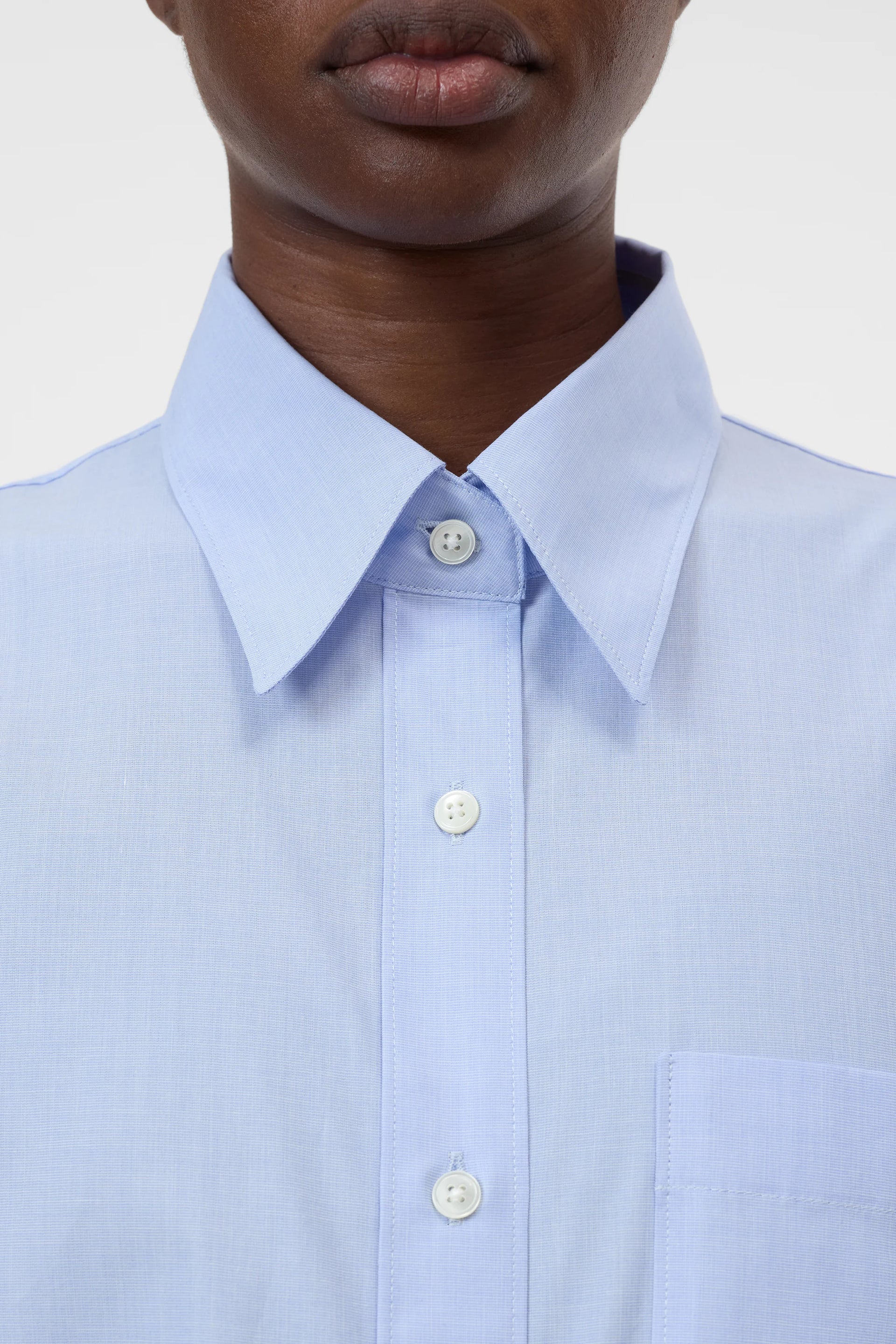 Cut in the style of a casual business shirt: our shirt blouse made of pure cotton in a light, Portuguese quality. With chest pocket, mother-of-pearl buttons and side slits at the rounded hem. Manufactured by our experts in Portugal.
