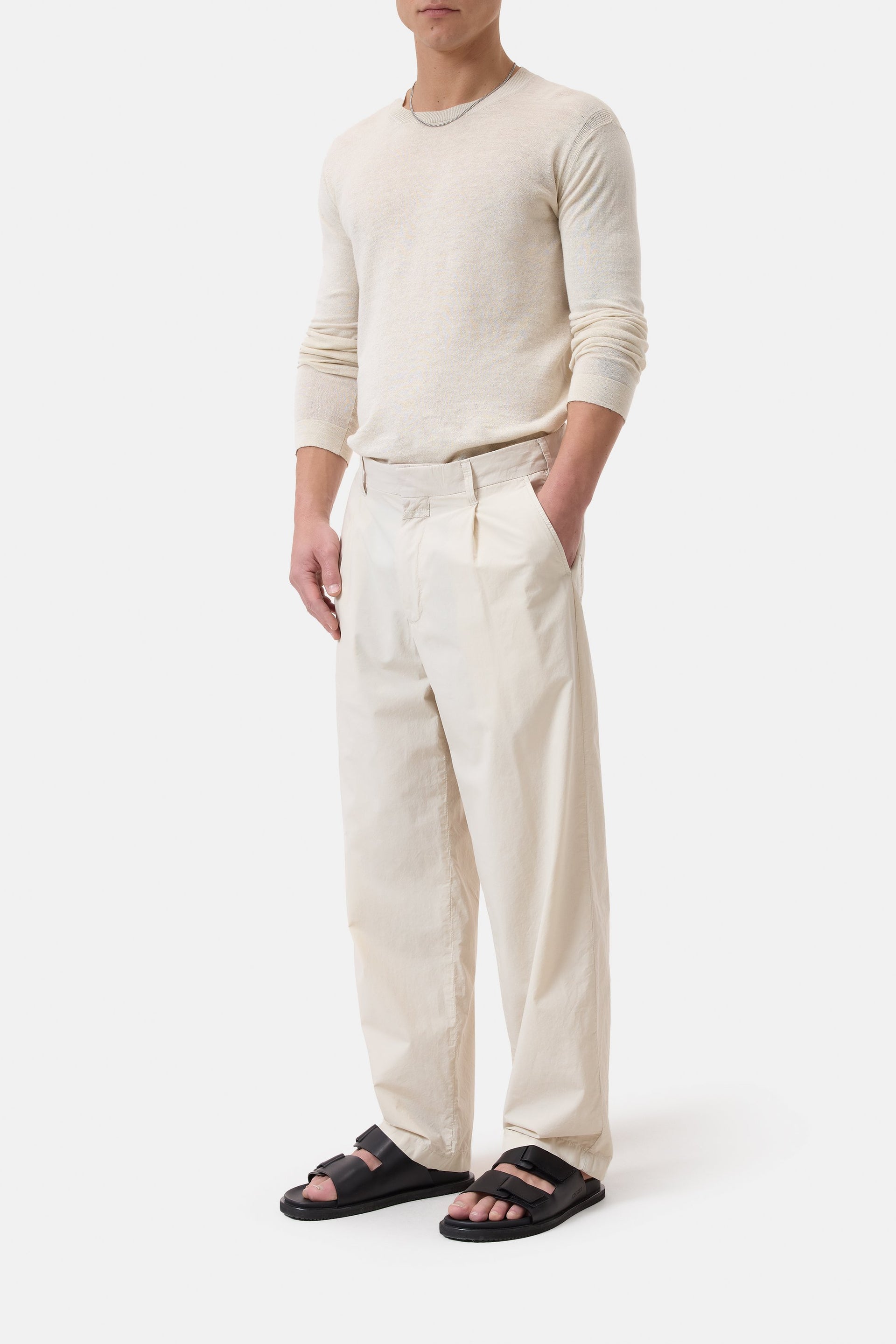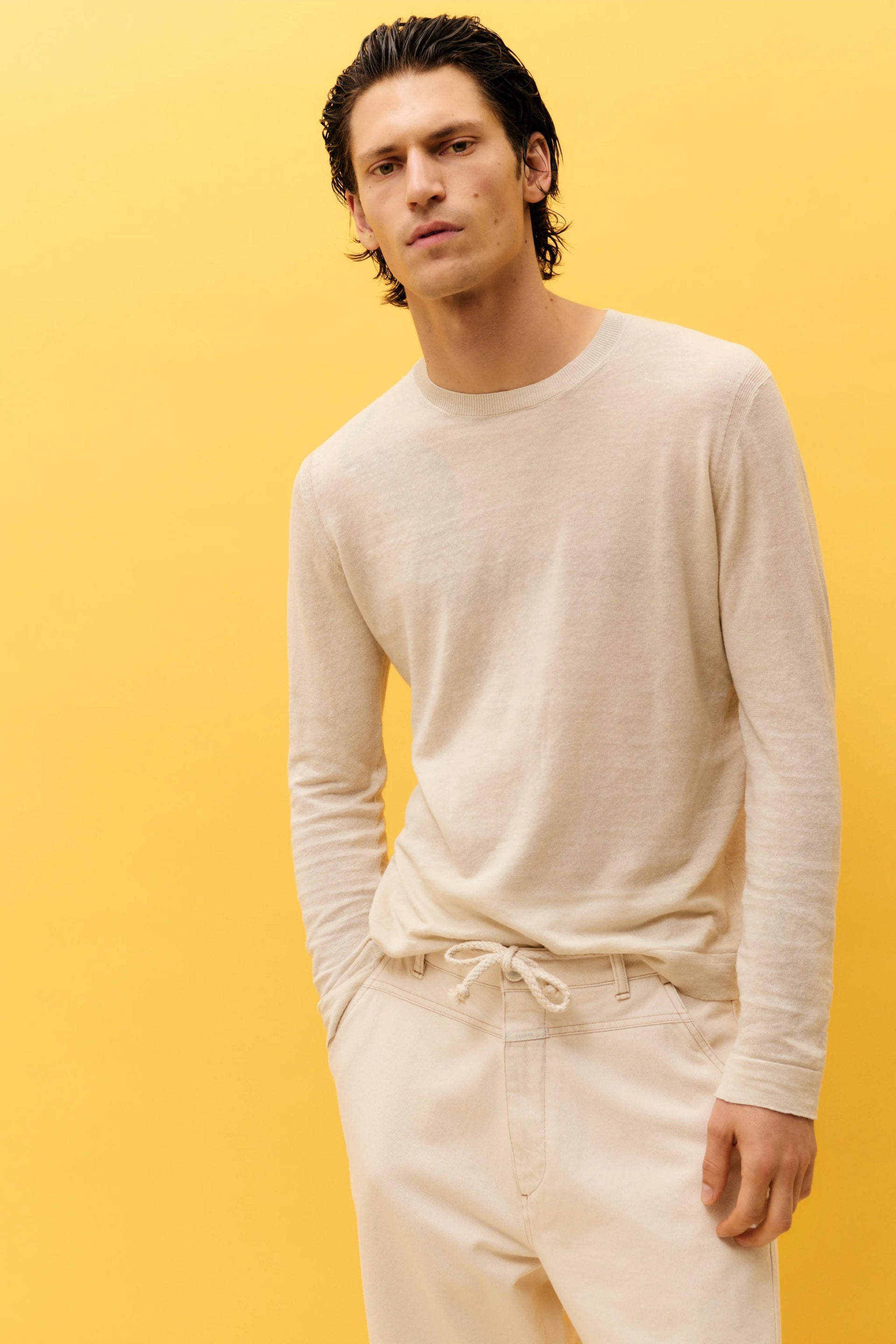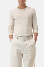 Made from a high-quality linen-cotton-mix quality (12 gg) in light jersey technique: sweater with ribbed round neckline and cuffs at the sleeve and hem.
