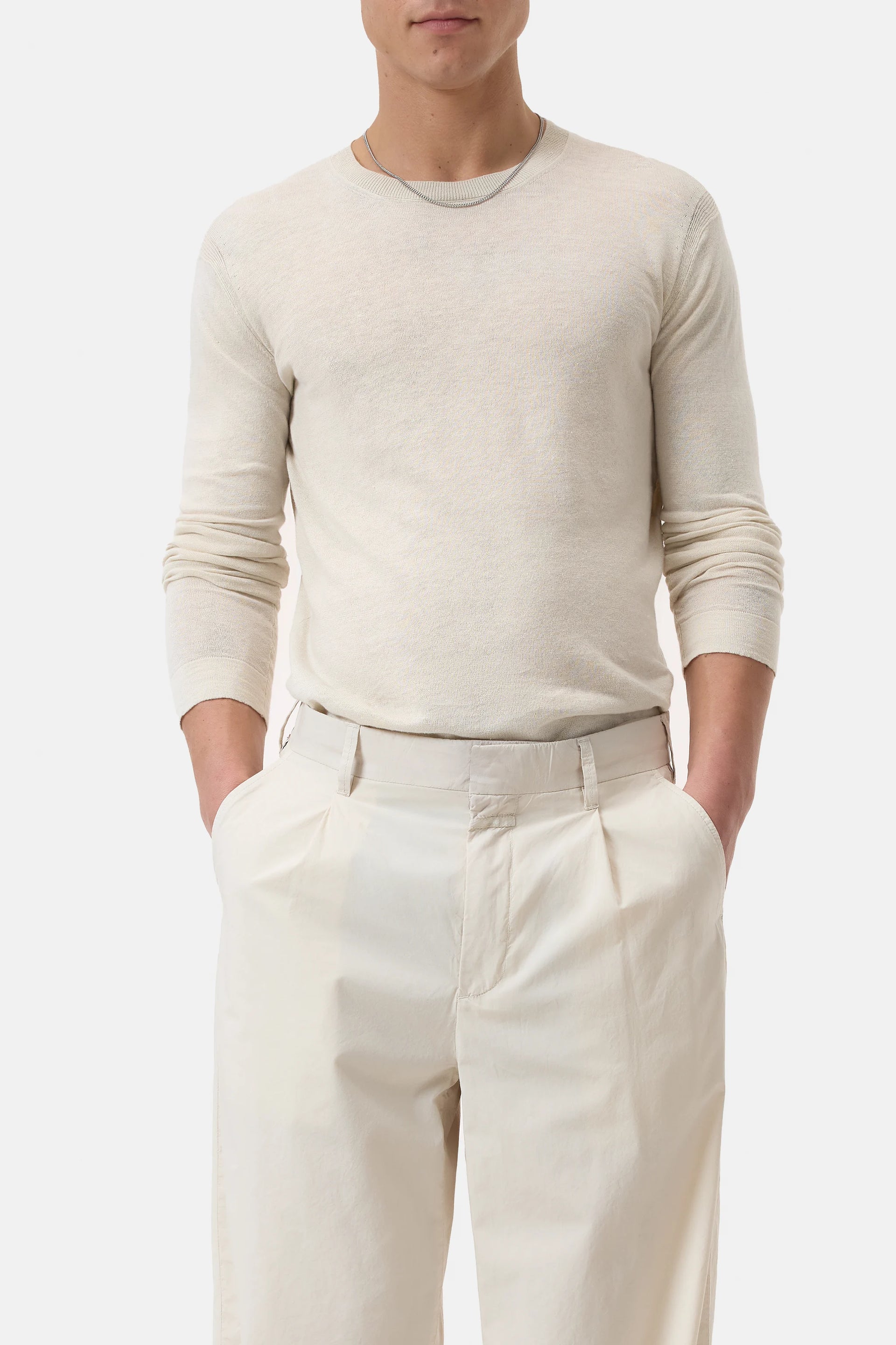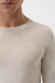 CLOSED MENS LINEN BLEND CREW NECK SWEATER - LIME BEIGE