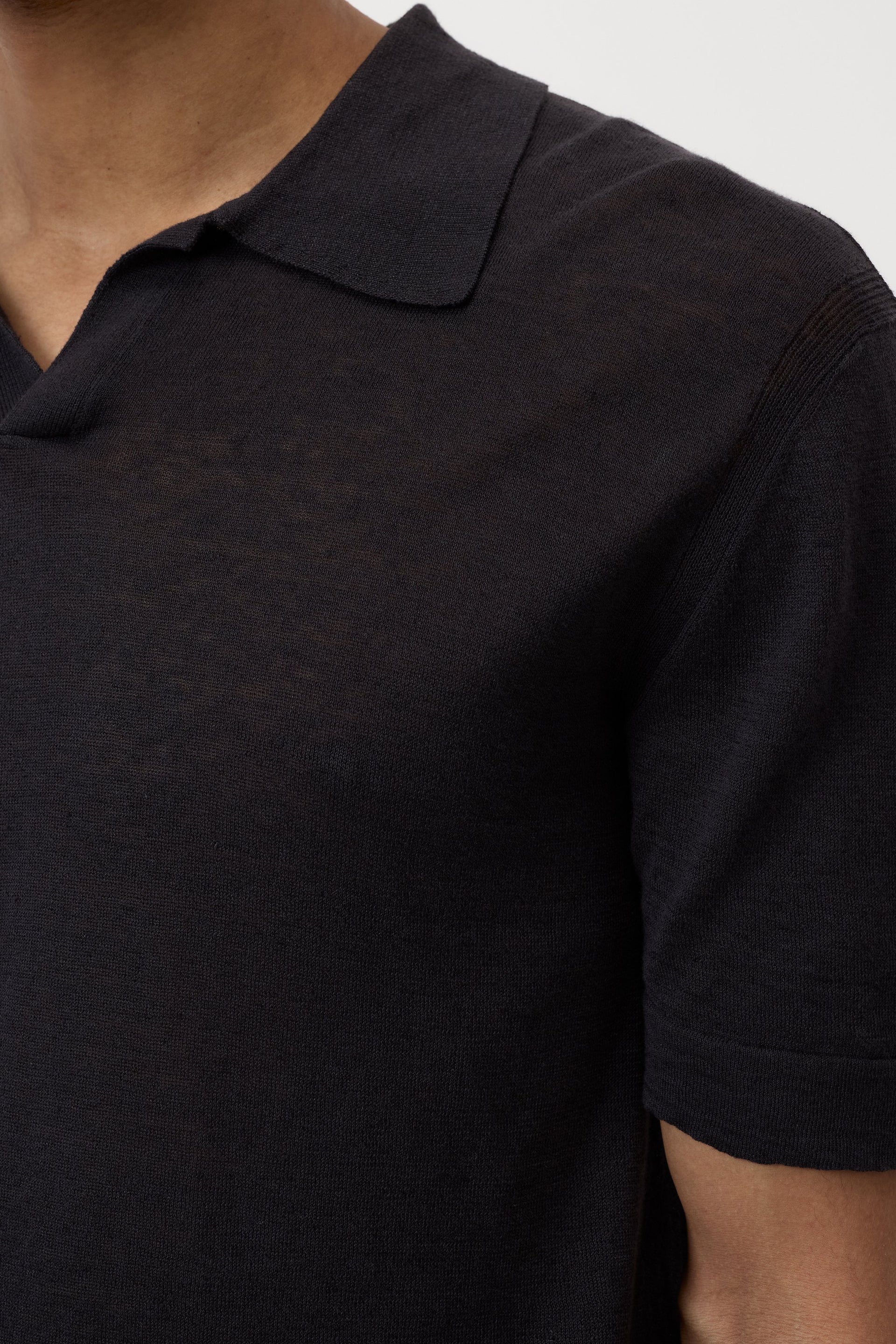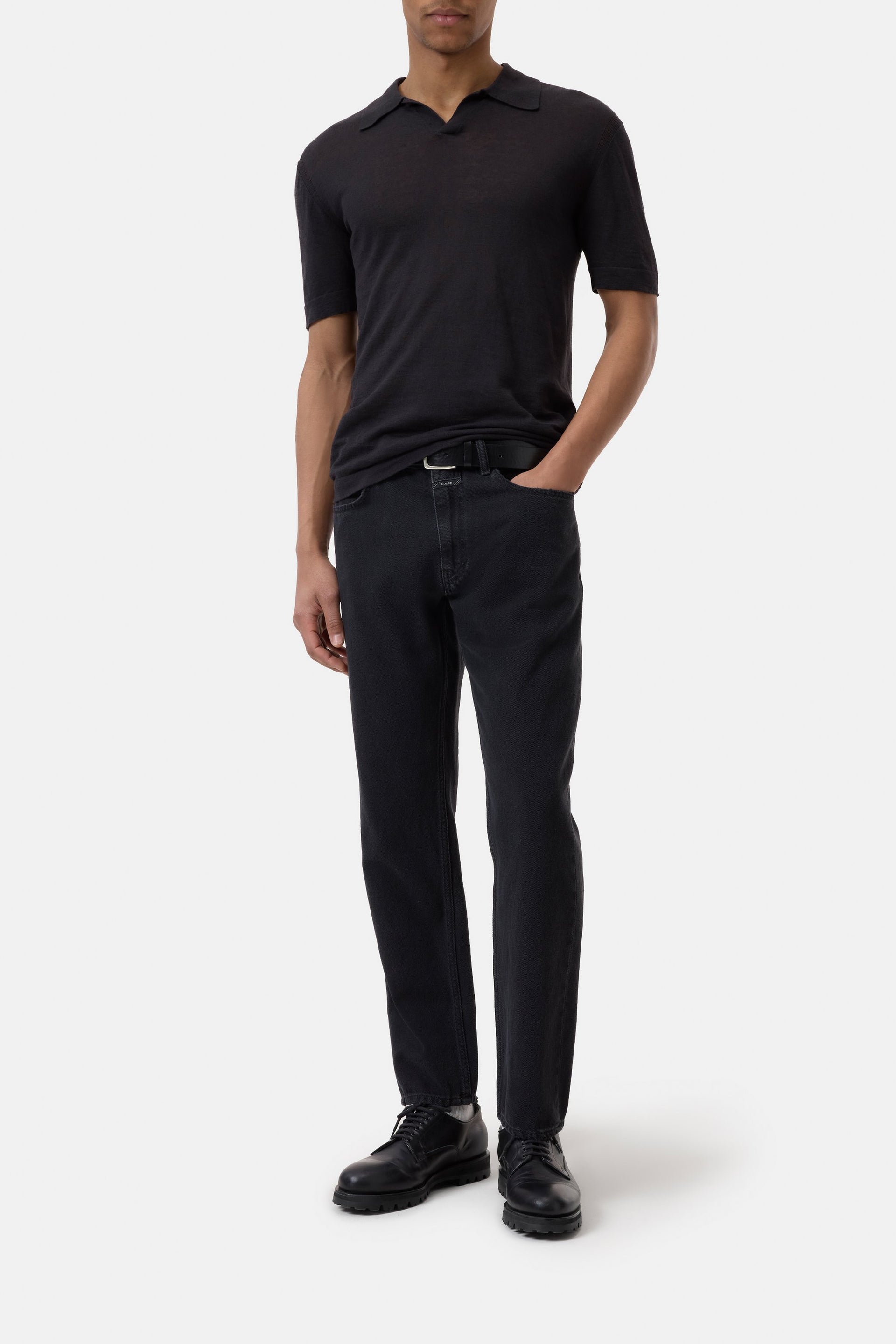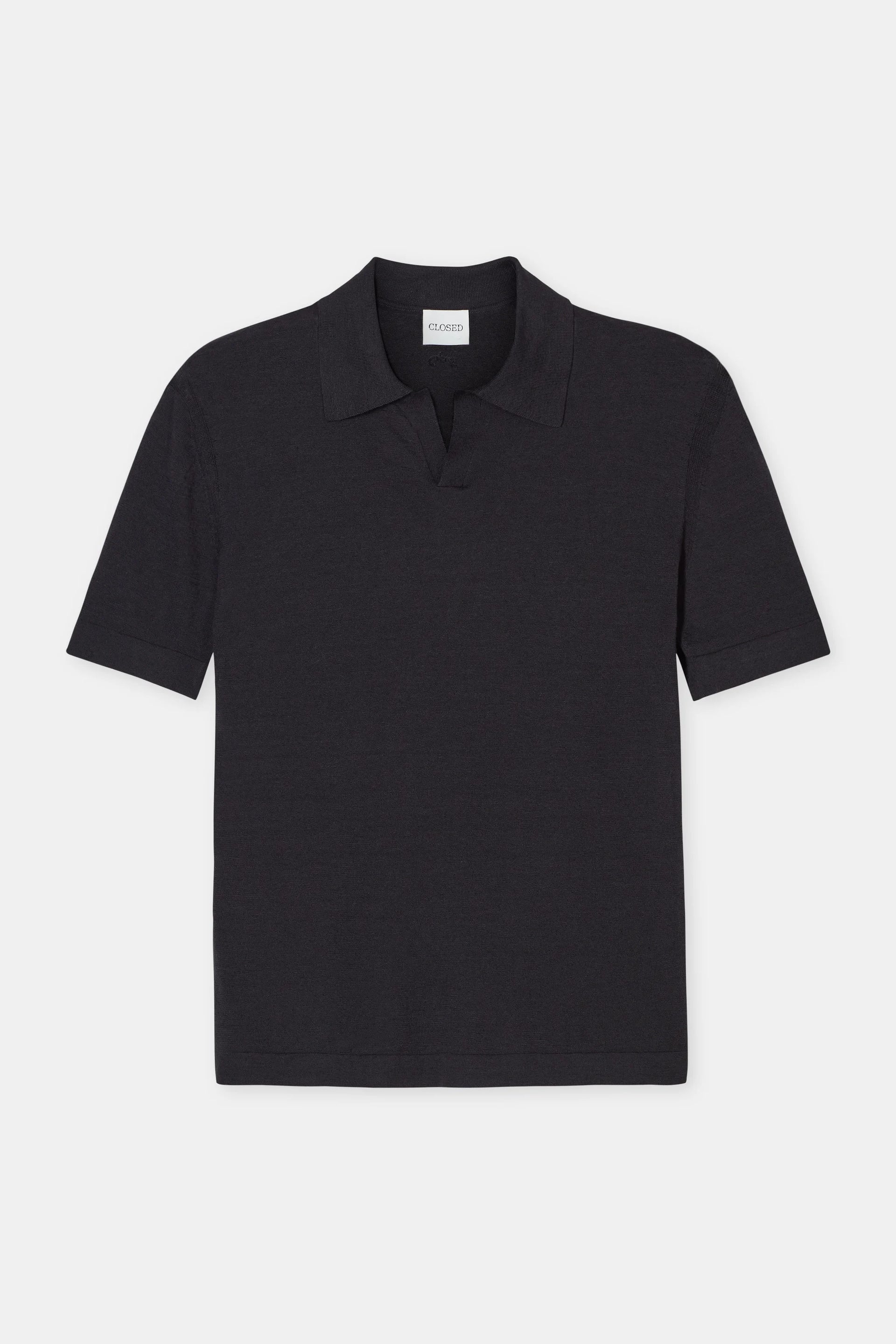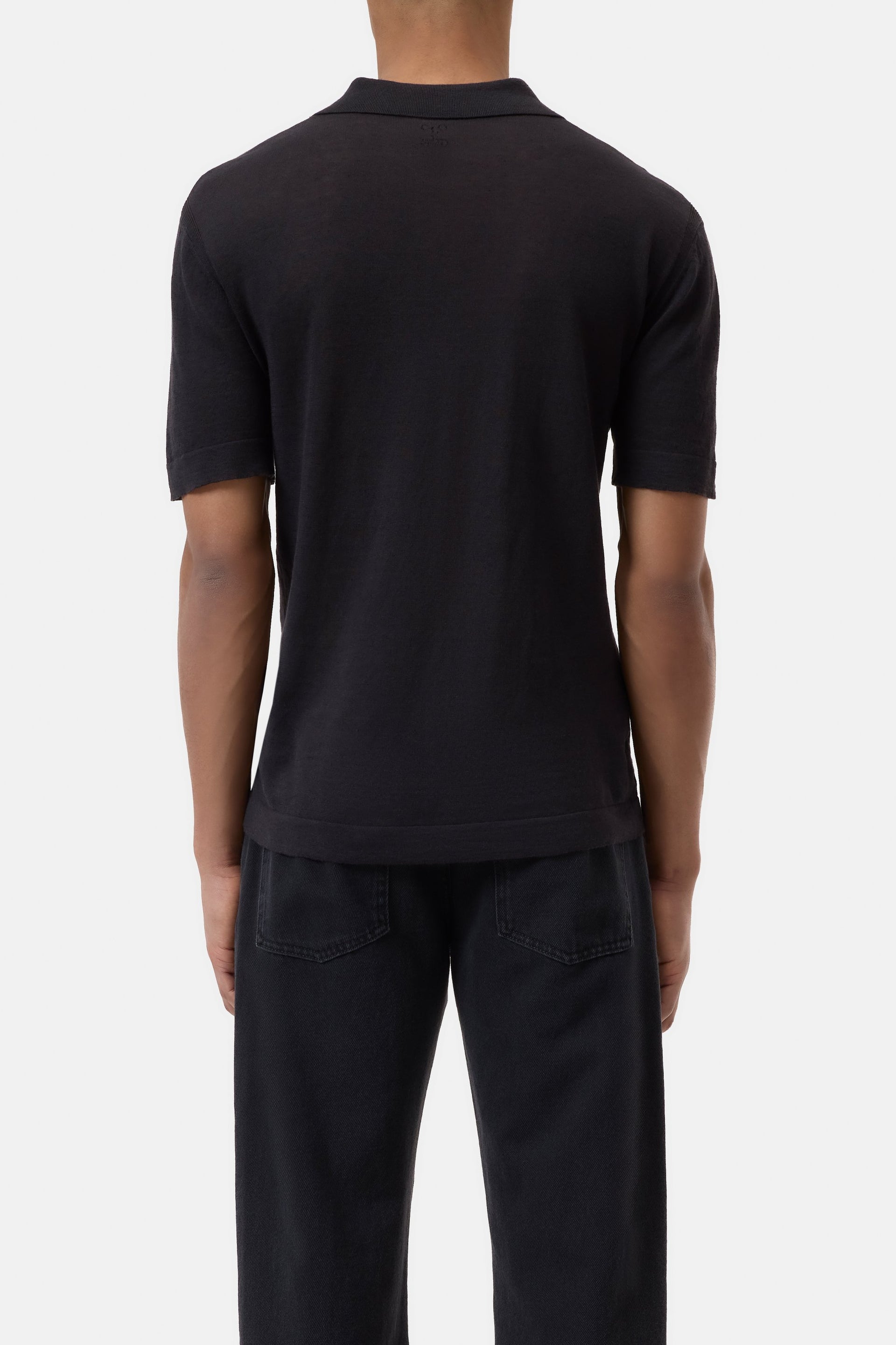 CLOSED MENS LINEN BLEND POLO SHIRT - BLACK