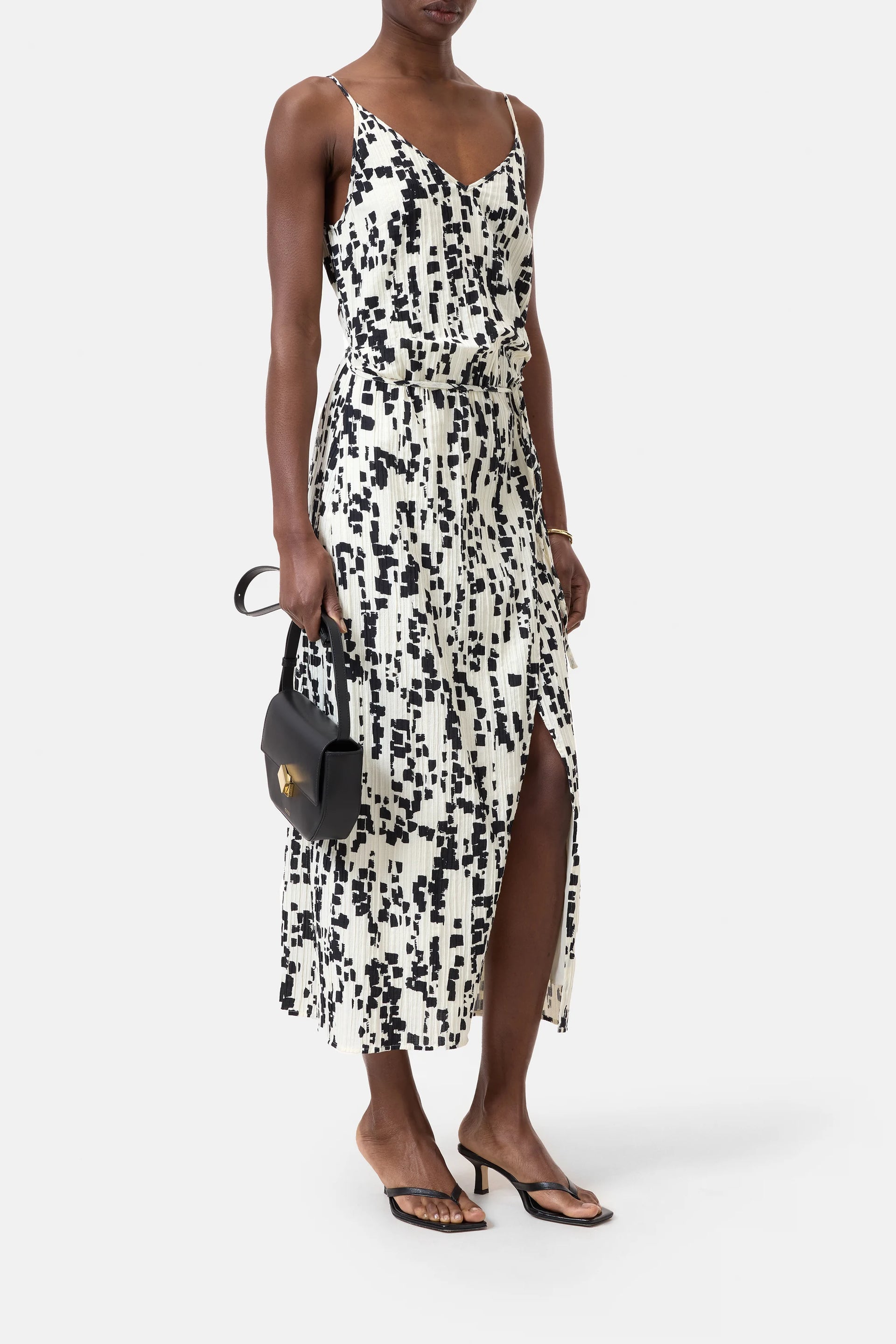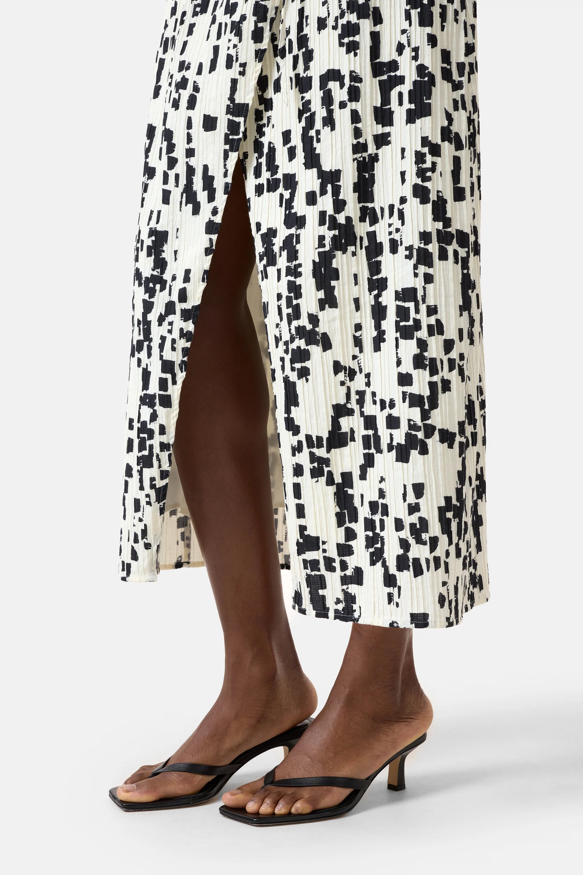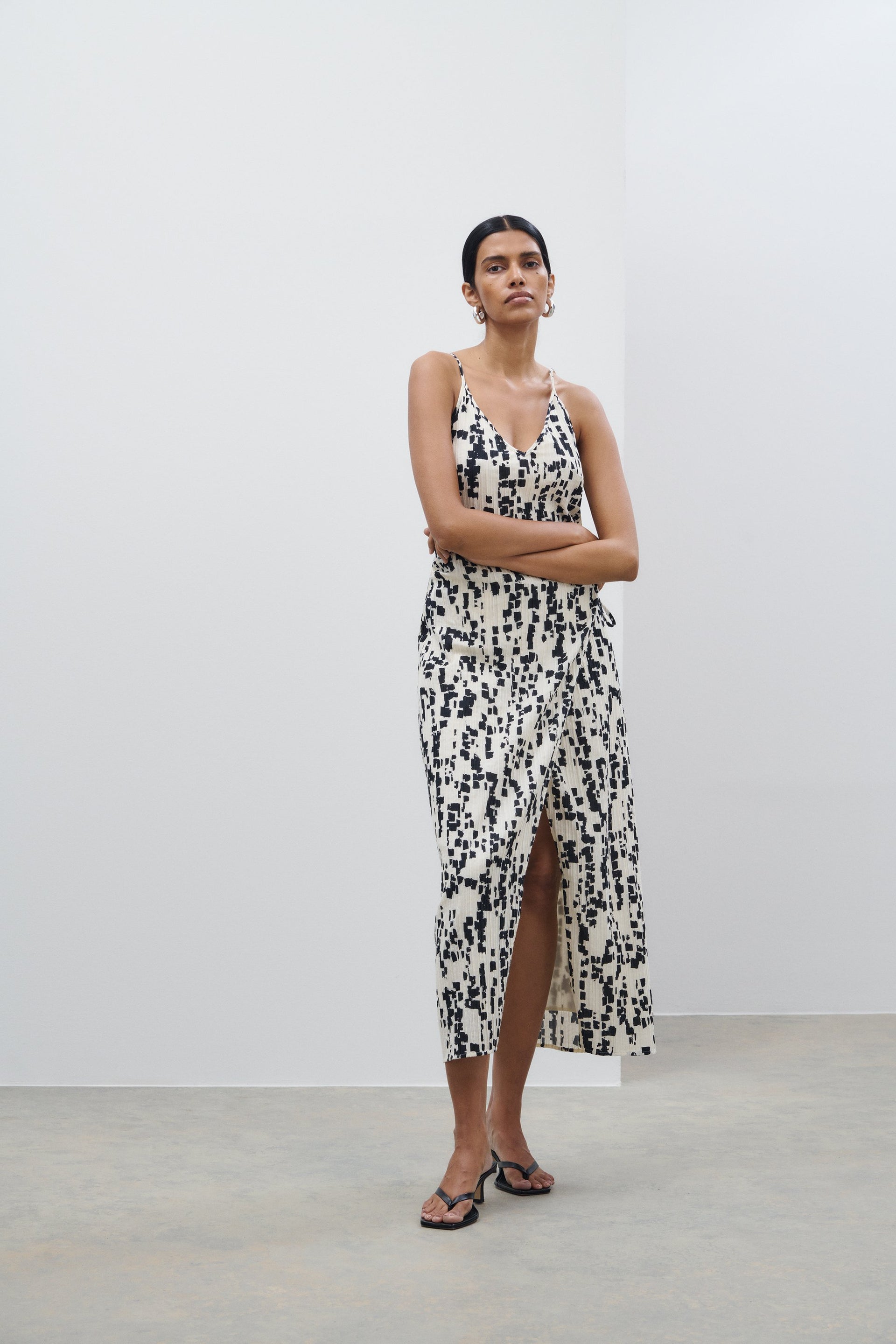 The slim wrap dress in cotton quality with a light elastane content for a soft feel. The abstract and graphic print gets a three-dimensional effect through a crinkle effect. With side lacing and V-neck on front and back.